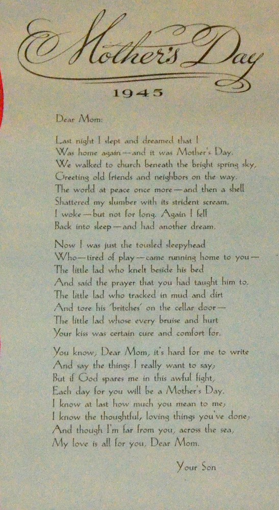 Original 1945 Mother's Day Poem from Soldier Son - KC Baking Powder Promo with Tube
