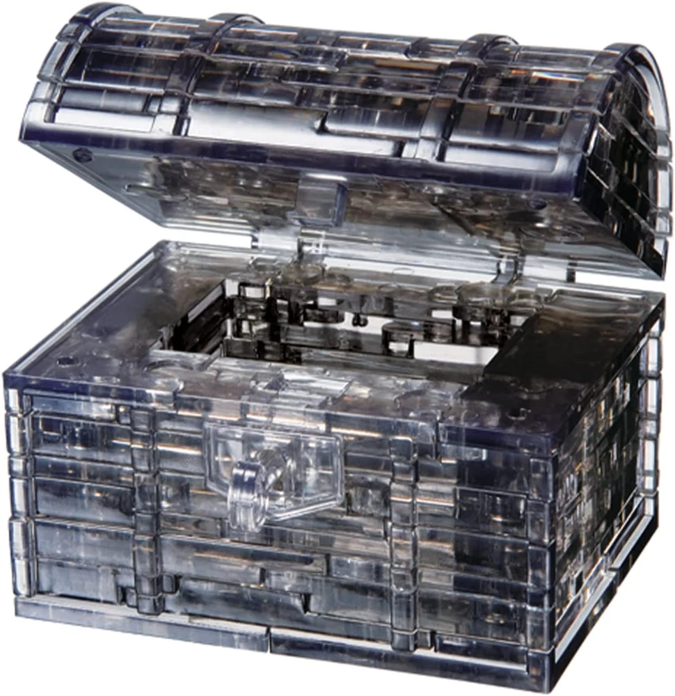 The Black Treasure Chest 3D Crystal Puzzle from BePuzzled is a sleek, translucent puzzle with 52 unique interlocking crystalline pieces, including key Take puzzling to a whole new dimension with this stunning, yet functional crystal puzzle Enjoyable to work on, challenging to complete and beautiful to display This 3D puzzle has a difficulty level of 2 and is fun for puzzlers age 12 and up Approximate assembled size = 3-1/8" x 2-3/8" x 2-1/2", 4" open Delight your mind and eyes with this 3D brainteaser that looks like it came off an old pirate ship! When you've pieced its interlocking plastic pieces together (it's a challenge), the key will open and close this colorful, sleek treasure chest. You’ll be proud to display this sleek, unusual puzzle, and can even store tiny items in it. BePuzzled is more than just jigsaw puzzles. It's puzzle-plus. WARNING: Do not order this product from retailers that ship from outside of the U.S. or Canada as it is most likely a poor quality, counterfeit product.