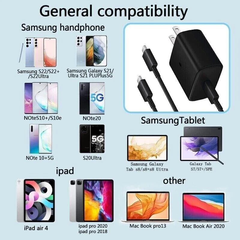 Original 45W Super Fast Wall Charger for Samsung S22 S23 S24 S25 Ultra