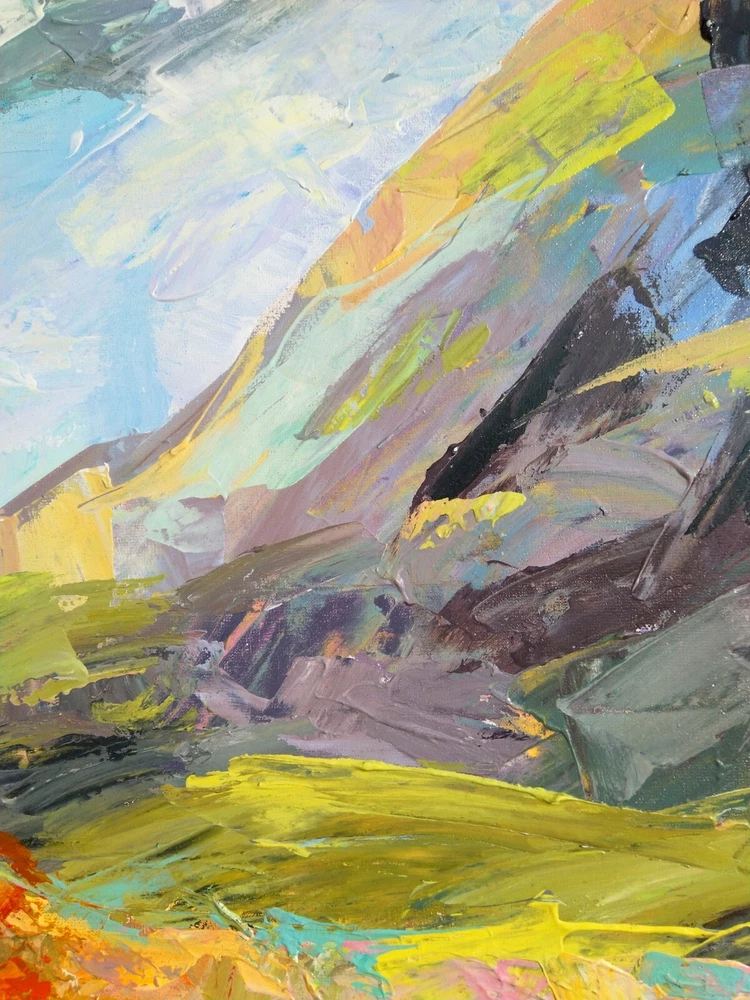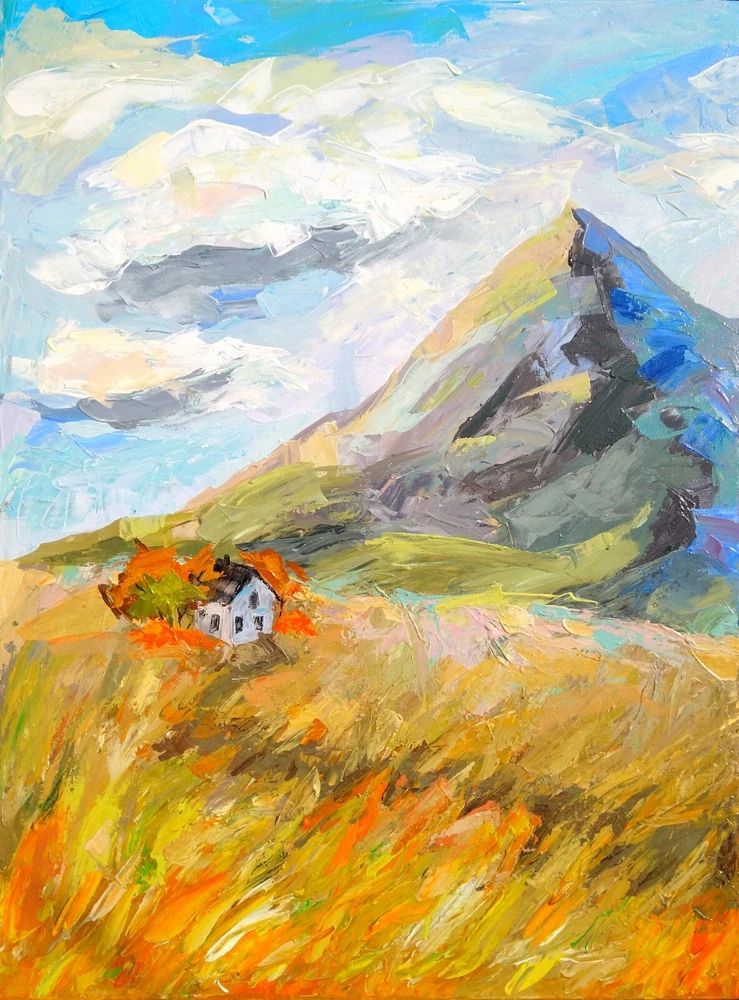 I want the viewer, looking at this picture, to feel the burning, dazzling day of summer. When the breeze kicks up the cotton curtain, and on the table is a huge vase of wildflowers on a white tablecloth with apples rolling on it. The long vacation has just begun and you drove out of town. There is no business waiting for you, and you can lie on the sofa reading a magazine with your foot on the cool wooden floor. -ORIGINAL painting. This is not a copy or print. -Professional quality artists light fast acrylic paints on canvas using a palette knife. -Signature on the front and on the back. -Size: 60*80 cm. / 31*23 inches -Free shipping with tracking number impasto painting,canvas impasto painting,wall art,original art,original painting,contemporary art,modern painting,landscape painting,landscape canvas painting,palette knife painting,3d painting,volumetric painting,volumetric smears painting,italy painting,mountains painting