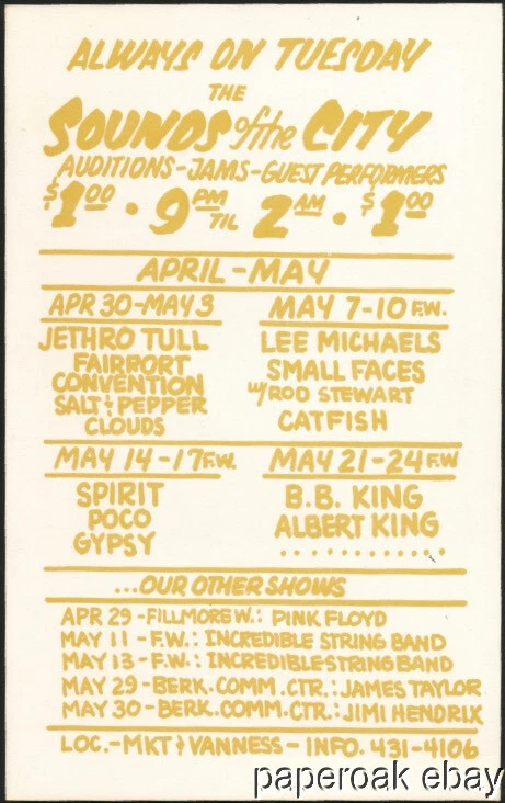 Original Bill Graham No.231 Fillmore West Ad Back Postcard Jethro Tull