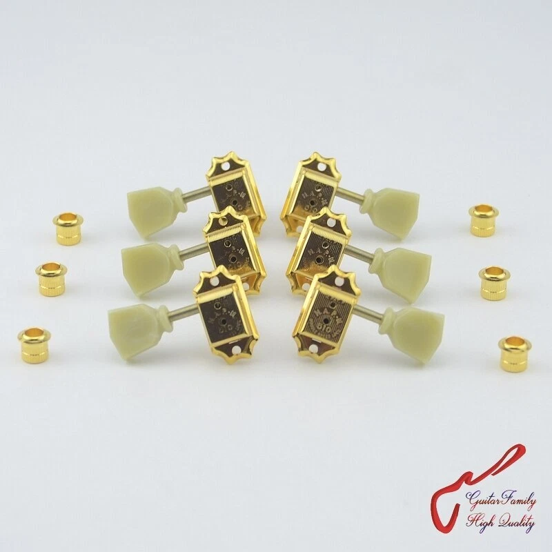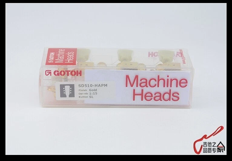 PRODUCT INTRODUCTION : ITEM: Original G-GOTOH Guitar Machineheads Tuners STIPULATIONS: SD510-SL-HAPM L3+R3 ; Gear ratio - 1:15 PRODUCTION PLACE: G-GOTOH COLOR: Gold as shown in the picture WEIGHT: 221G/Set ITEM REAL PICTURES: