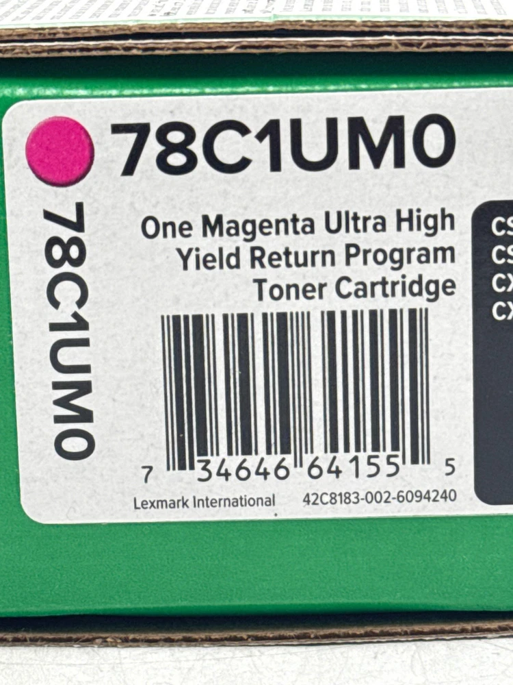 Original Lexmark 78C1UM0 Magenta Toner Cartridge Genuine OEM - Brand New Original Lexmark 78C1UM0 Magenta Toner Cartridge Genuine OEM - Brand New Item Specifications Make Lexmark Model 78C1UM0 Category Printer Toner & Ink Condition New In Box Color Magenta Cosmetic Description: Brand new, factory sealed in original packaging. This Lexmark 78C1UM0 Magenta toner cartridge has never been opened, installed, or used in any printer. The original manufacturer seal is intact, ensuring the product is completely unused and in perfect condition. This is an original Lexmark 78C1UM0 Magenta toner cartridge, designed for reliable, high-quality printing performance. As a genuine OEM Lexmark product, it delivers consistent color output, sharp text, and professional-grade print results suitable for both home and office environments. The cartridge is engineered for seamless compatibility with supported Lexmark printer models, ensuring smooth installation and dependable operation. Ideal for replacing an empty toner or keeping as a spare for business or personal printing needs. Shipping & Returns: Free shipping & free 30 days returns. Gadget Grabber Home About us CustomerFeedback Contact seller shop All categories shop All categories Video Games & Consoles Computers/Tablets & Networking Consumer Electronics Cell Phones & Accessories Cameras & Photo Musical Instruments & Gear Everything Else Fast Shipping 30 Days Hassle Free Returns eBay Money Back Guarantee 100% Authentic, Tested Products Top Products from Best Brands Original Lexmark 78C1UM0 Magenta Toner Cartridge Genuine OEM - Brand New $204.99 visit store Contact seller Great Customer Service Great Feedback Product Description Original Lexmark 78C1UM0 Magenta Toner Cartridge Genuine OEM - Brand New Item Specifications Make Lexmark Model 78C1UM0 Category Printer Toner & Ink Condition New In Box Color Magenta Cosmetic Description: Brand new, factory sealed in original packaging. This Lexmark 78C1UM0 Magenta toner cartridge has never been opened, installed, or uséd in any printer. The original manufacturer seal is intact, ensuring the product is completely unuséd and in perfect condition. This is an original Lexmark 78C1UM0 Magenta toner cartridge, designed for reliable, high-quality printing performance. As a genuine OEM Lexmark product, it delivers consistent color output, sharp text, and professional-grade print results suitable for both home and office environments. The cartridge is engineered for seamless compatibility with supported Lexmark printer models, ensuring smooth installation and dependable operation. Ideal for replacing an empty toner or keeping as a spare for business or personal printing needs. Shipping & Returns: Free shipping & free 30 days returns. Shipping & returns With any purchase from Gadget Grabber, youâre also purchasing a guaranteed satisfaction with your item and your experience. Our team members are dedicated to making it happen, but mistakes do happen. If for any reason you are not satisfied with your purchase, please contact us before installing the item. payment Immediate payment is required upon selecting "Buy It Now" or upon checking out through the cart. We accept payment via U.S. PayPal accounts and all Major Credit Cards, Debit Cards & Google Pay. We are legally required to collect sales tax in those states and localities where we maintain a physical presence (nexus). The applicable amount of sales tax charged to an order will be calculated based on the shipment destination's state and local sales tax laws. Thank you for shopping with us on eBay! Featured Category Video Games & Consoles Shop Now Computer Tablet/ Networking Shop Now Consumer Electronics Shop Now Smartphones/ Cellphones Shop Now Cell Phones & Accessories Shop Now CUSTOMER REVIEWS 8***0 (90) Verified purchase Received the camera very quickly. It was packaged well and secured with nothing broken upon arrival. Everything looked just like the photos and i feel as if i got a great price for what i received. Highly recommend this seller! Thank you n***6 (15) Verified purchase Great seller, item arrived as described, excellent communication and packaging, highly recommend! x***e (1539) Verified purchase Item as described. Item well packaged. Fast shipping Great communication with seller. Highly recommended seller. I'I deal with you again. a***r (146) Verified purchase Great seller! The device was packaged welled and arrived before the expected date. The device was exactly as described and works perfectly. I would recommend this seller to others! m***n (22) Verified purchase Everything was great and price was even better! Quick shipping, packaged well, as described. a***n (49) Verified purchase Good price and game worked great! Game was shipped right away and was packaged safely. It was exactly as described. t***k (475) Verified purchase Great price, shipped quickly and with good packaging. As described, thank you! j***m (49) Verified purchase Shipping was fast. So well packed. Every was described to the T... The grandkids and I will have fun!! Would buy again from seller. A+++++. Thank you. c***a (20) Verified purchase Fast shipping, good price, and nice packaging. Would buy from again. GET THE LATEST WERKO DISCOUNT & NEWS Want to know when your favourite products go on sale? Access exclusive discounts & stay on top of the latest products. Subscribe to our mailing list for insider news, product launches, and more. subscribe now information Store Home About Us Sale Customer Feedback Contact Seller our categories Video Games & Consoles Computers/Tablets & Networking Consumer Electronics Cell Phones & Accessories Cameras & Photo Musical Instruments & Gear Everything Else Copyright © Gadget Grabber 2025. All Right Reserved. | Design by eStoreNinja.com eBay integration by