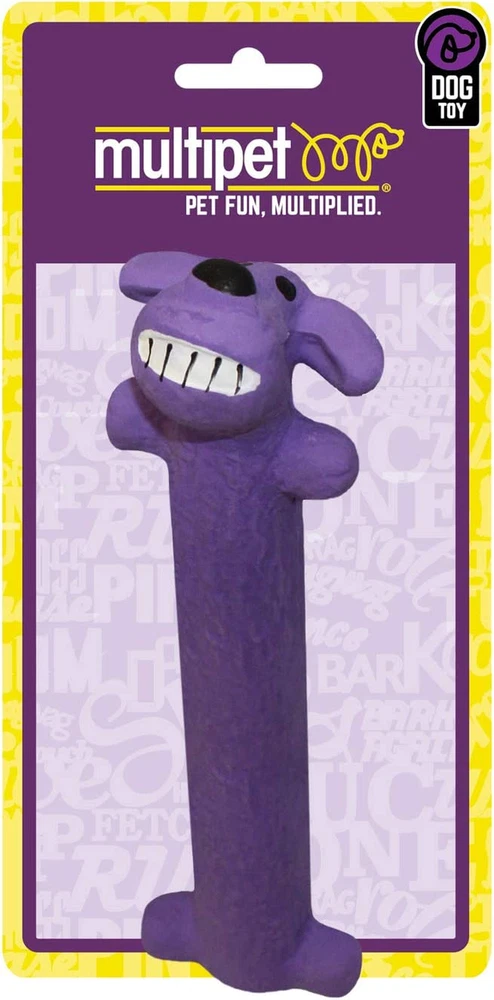 Fun and squeaky toy that your dog needs! Durable lates material Easy to clean The 6-inch size is perfect for small dogs. Assorted colors. You will receive one item. The Original loofa dog is available in a mini latex 6-inch size with a "ruff" design and texture. This latex covered and plush filled squeaky dog toy is designed for puppies and small dogs. Available in assorted colors, you will receive one item at random.