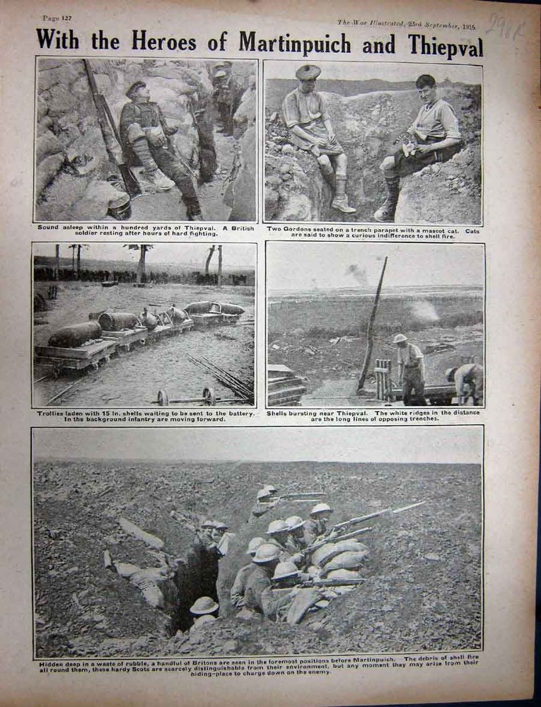 Old Original Antique Victorian Print WW1 1916 Soldiers Thiepval British Martinpuich Germans A Page And Reverse With Photographs Or Sketches Taken From The War Illustrated. A Ww1 Pictorial Record Of The Conflict Of The Nations Edited By J A Hammerton Editor Of Harmsworth History Of The World. Dated As 1916 Or As In Title. image Size Is 11 X 9 Inches (280X230). All Are Genuine And Not Modern Copies. All prints are original antique prints and are not copies. Many are unique and rare. All products are delivered securely in a re-inforced hard back envelope or a postal tube.