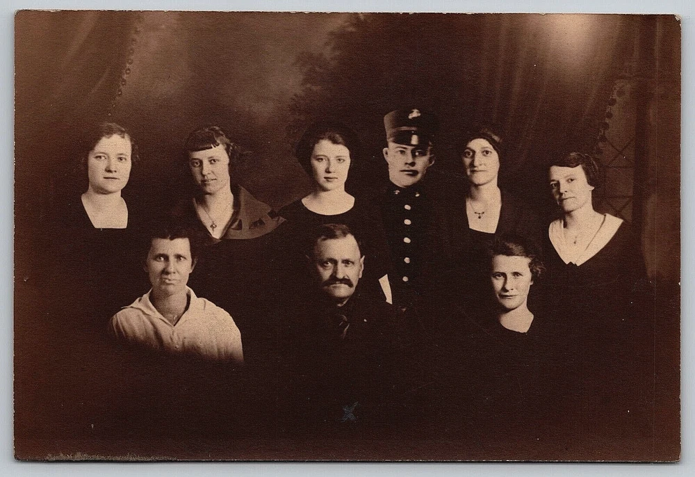 WELCOME TO People And Places Of The Past Here you will find unique antique photographs, real photo postcards, and other vintage postcards that can be used for collecting, genealogy, or crafting. Many of these historic photographs are rare, hard to find, and are one-of-a-kind images that cannot be found anywhere else. Please visit our ebay store and Thank You for shopping with us! This unique and rare vintage photograph is in good condition. This is a great vintage, genuine photograph. It features a studio photograph of a family with what appears to be a soldier that is superimposed in the back. It is possible that the man was serving elsewhere at the time or possible was killed and the family had his image added to this photo. It is a beautiful, one of a kind photograph! Please see high resolution scans of the front and back of this photograph closely for detailed cosmetic condition, prior to purchase. This photograph measures 4 inches x 6 inches. This photograph will be shipped to you packaged well inside of a clear plastic sleeve, inside of a clear plastic top loader, inside of a quality 650 GSM rigid, stay flat envelope with cardboard inside to keep the photo protected during shipping within the United States. A FRAGILE and a DO NOT BEND sticker will be applied to the outside of the the envelope. Your photograph will be delivered to the post office the same day, or the next business day, after receiving payment. Bad weather and holidays can affect delivery time. Returns are accepted within 30 days of purchase. Shipping Options (Choose The Best Option For You For Cost And Speed Of Delivery): 1. USPS GROUND ADVANTAGE - Full bar code tracking available. 2 - 5 business days estimated delivery. 2 . USPS PRIORITY MAIL - Full bar code tracking available. 1 - 4 business days estimated delivery. Each item is inspected, packaged, weighed, and sealed individually for FAST SHIPPING! We try our best to represent the item in the images as accurately as we can. However, due to variations in color in image scanners, computer screens, and cell phone displays, the color may be slightly different than the actual product. Vintage photographs can show normal signs of wear associated with an antique image including curling, bends, folds, multiple creases, holes, stains, rips, scratches, worn edges, fading, crackling, handwriting, ink or pencil marks, finger prints, missing pieces, paper or glue residue from being put into or taken out of old photograph albums, other damage that may not show up from the image scanner, or may be out of focus by the original photographer. They will have imperfections from handling and their antique age. Thank You For Shopping With People And Places Of The Past! Visit our ebay store at www.ebay.com/str/peopleandplacesofthepast