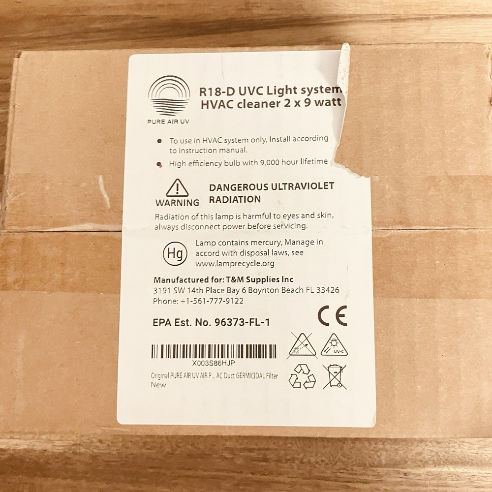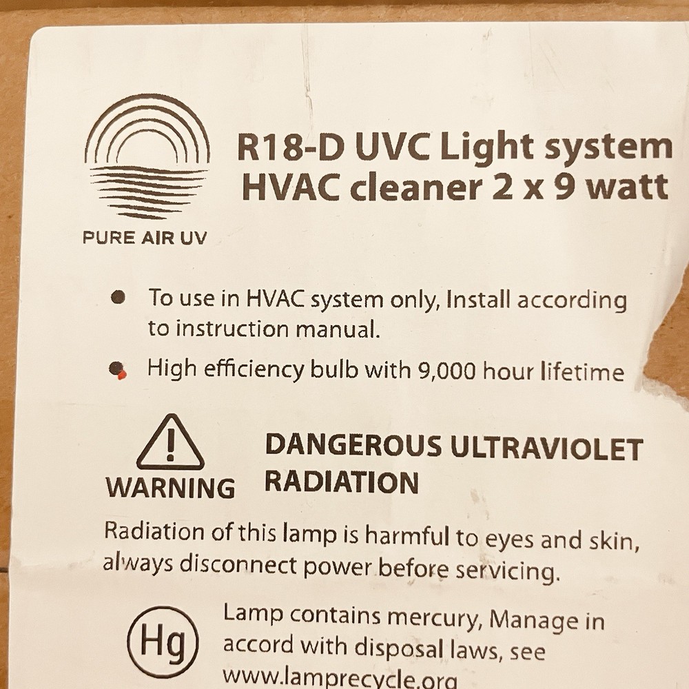 Original PURE AIR UV AIR Purifier Whole House Dual UV UVC Light R-18D