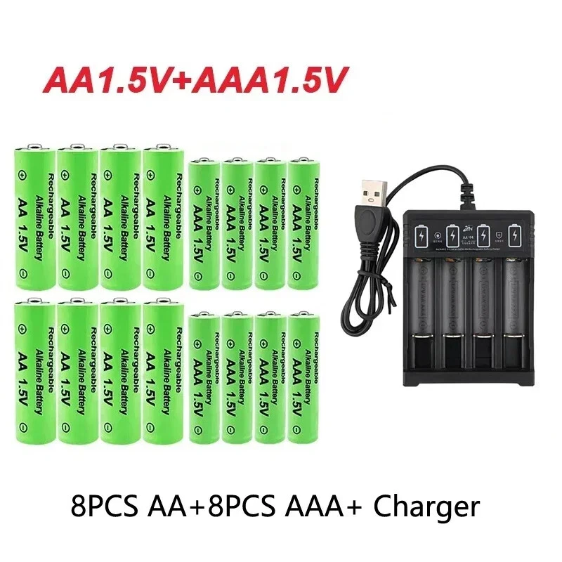 1.5V AA 9800mAh+1.5V AAA 8800mAh alkaline rechargeable battery With charger Used for LED remote control toys, computer clocks, radios, video games, smoke detectors, cordless phones Battery characteristics: AA: Capacity: 9800 mAh AAA: Capacity: 8800 mAh 1 Brand: Ddadache 2. High voltage: 1.5V 3. Charging method: AAA, alkaline rechargeable battery 4. Environmentally friendly materials 5. Up to 1000 charging cycles 6. Excellent high emission/drainage performance 7. Accurately replace standard AAA batteries 8. Excellent low-temperature performance 9. It can be used for a longer time in high discharge equipment. 10. Do not invert the positive and negative poles of the battery.