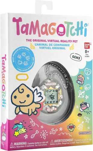 Original Tamagotchi - Lovely Angel [New Toy] Collectible, Interactive Game Title: Original Tamagotchi - Lovely Angel Format: Toy Label: Bandai Genre: Gifts UPC: 045557429898 Release Date: 2025 Notice: Please be aware that you are the Importer of record, and that your Government may charge import duties upon delivery. The Original digital pet you love with a Lovely Angel shell design and three-dimensional wings! Comes with Angel programming, the device will begin with the Obaketchi Angel (a ghost character), and depending on how you nurture your character will determine which of the 5 adult Tamagotchi Angel characters you will get. You feed it, clean up after it, and even praise it. Plus, you can play the Shooting Star mini-game! It includes the CR2032 battery and is attached to your bag so it goes everywhere! Features: The Original Tamagotchi digital pet allows you to feed it, turn lights on/off, play with it, give it medicine, flush after it’s used the bathroom, check its health meter, and praise your Tamagotchi Angel character. A tapping feature is also included! Tap the shell to bring your Angel Tamagotchi character back from a stroll. Or use the tap feature to scare off a bat that tries to steal candy. With Angel programming play the Shooting Star mini-game to keep your Tamagotchi Angel character happy! How you nurture your Obaketchi Angel (ghost character) will determine which Tamagotchi Angel character you will get. There are 5 adult Tamagotchi Angel characters, plus secret characters. Comes with 1 Tamagotchi on a chain to take with you everywhere. Battery (CR2032) included. Colors, packaging, accessories may vary. Subject to availability. For Ages 8+ Battery (CR2032) included Warning: Contains button or coin cell battery. Hazardous if swallowed. See instuctions. Copyright DirectToU LLC. All Rights Reserved.