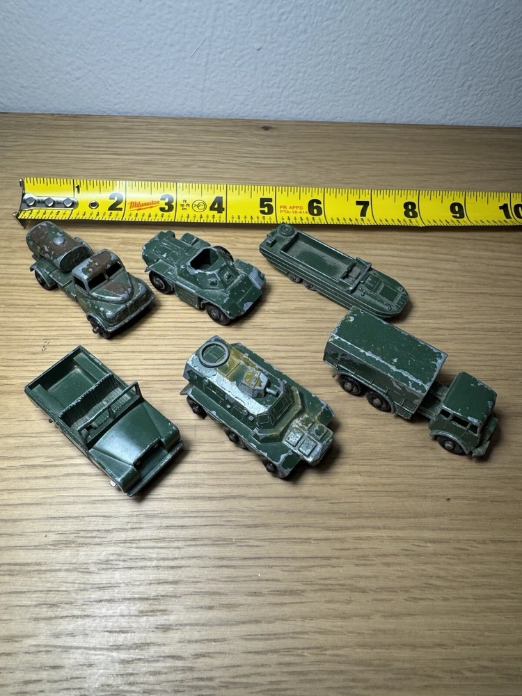 Original Vintage Lesney Matchbox Lot of (6) Military, Army Models. 1970’s. Condition is Used. Shipped with USPS Ground Advantage.