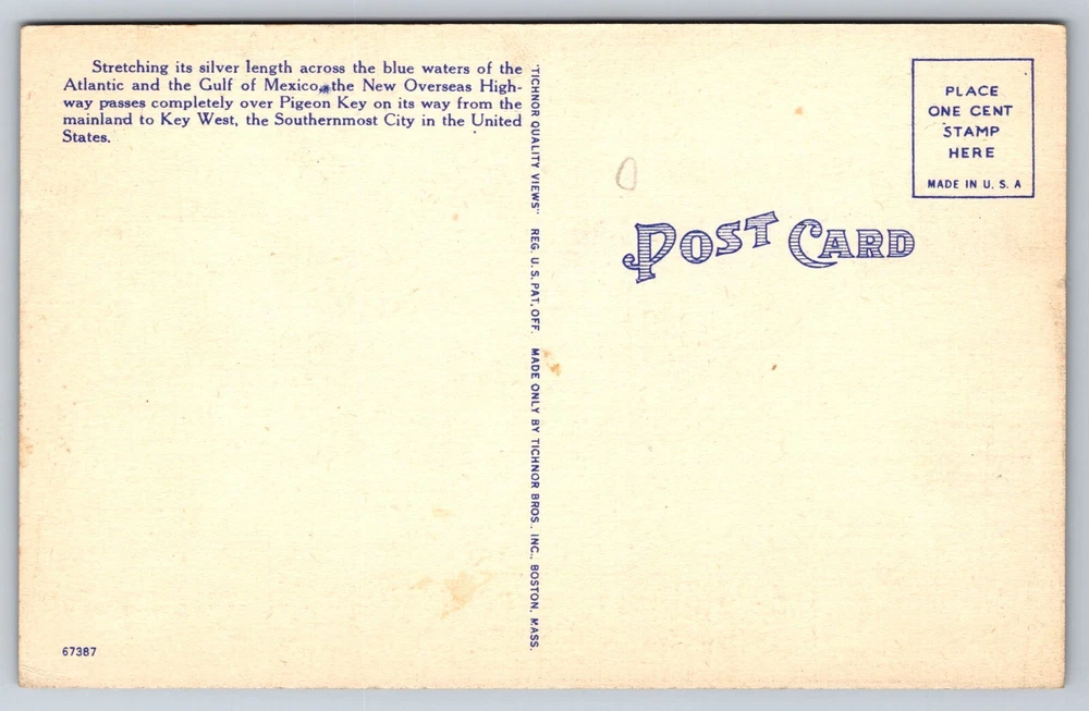 Original Vintage Postcard Seven Mile Oversea Highway Bridge Kentucky Florida USA