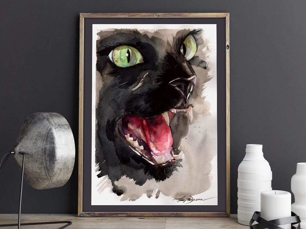 -ORIGINAL painting. This is not a copy or print. -Professional quality artists light fast, transparent watercolor paints and paper. -Signature on the front and on the back. -Size: 30*21 cm. / 11.8*8.2 inches -This painting is not framed. It will need to be framed behind glass. Place on a wall in your home away from direct sunlight. -The envelope comes protected with cardboard, so I make sure that you receive the painting without any damage. -Free shipping with tracking number black cat painting,black kitten art,cat art,black cat art,wall art,watercolor art,watercolor painting,black cat watercolor painting,original art,dark art,dark painting,original painting,grunge painting,grunge art,animals painting, halloween black cat painting, halloween décor, halloween black cat wall art, cat lovers gift
