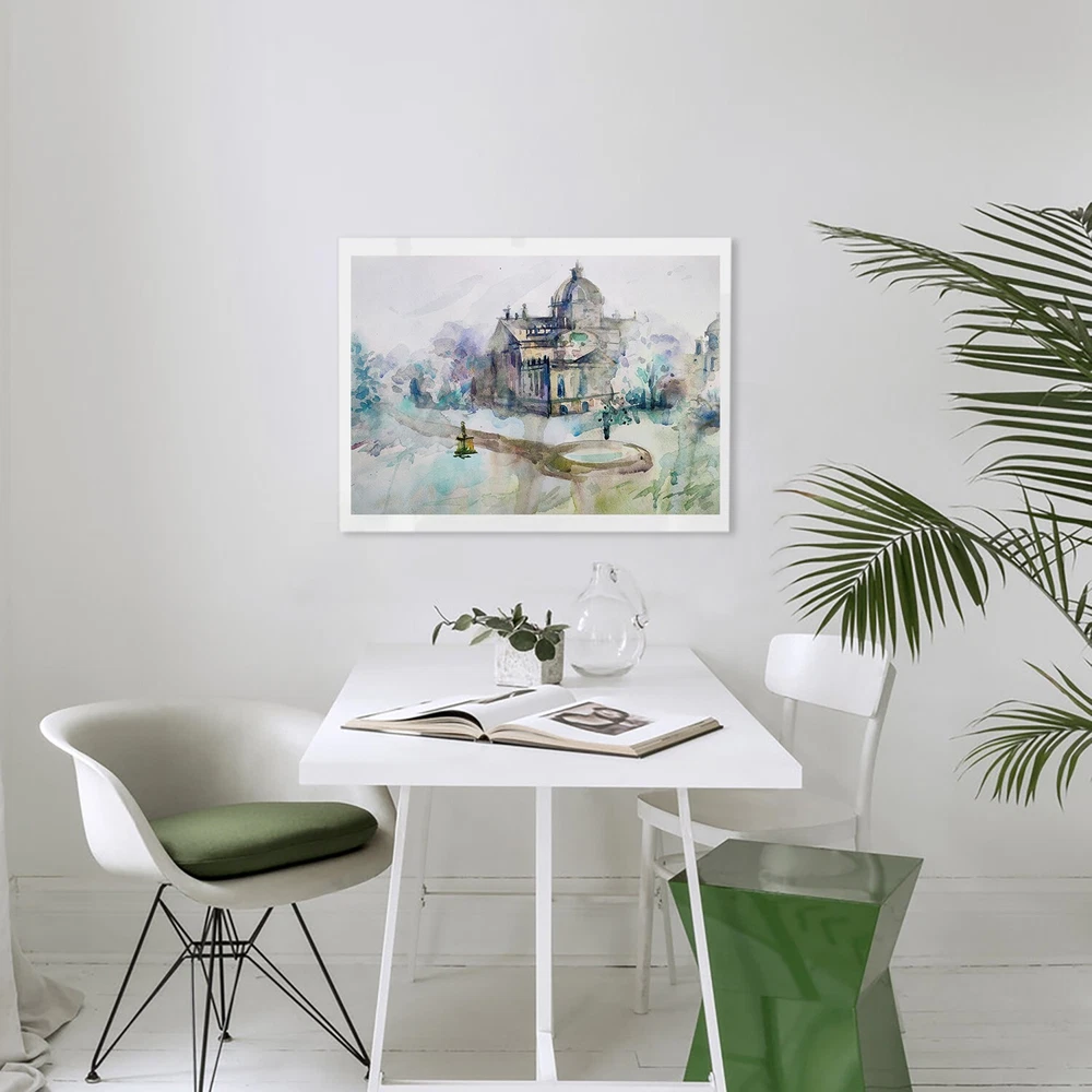 In this watercolor idyll, the magical world of an ancient castle, immersed in a winter atmosphere, opens up. Pastel shades, softly intertwined on paper, seem to whisper the secret of this place. The ancient walls of the castle, shrouded in a blanket of soft fog, like a bridge between reality and a fairy-tale world. The calmness of a winter day, slumbering in its cold beauty, is conveyed in the painting with exquisite sensitivity. Trees, decorated with frost, delicately bend their branches, creating a peaceful landscape. There are no unnecessary details in this picture; every drop of paint conveys an atmosphere of peace and solitude. The castle, like a guardian of centuries, is silent in its majestic beauty, and the silence of this winter landscape allows you to hear the rustle of snow flakes falling on the soft cover of the earth. This watercolor will become not just a decoration for your space, but a source of inspiration and peace. Its soft muted colors capture the moment when time slows down and you can enjoy this winter silence as if immersed in the magical world of an ancient castle. Let yourself be carried away by this mysterious journey and make this piece of winter magic your own. -ORIGINAL painting. This is not a copy or print. -Professional quality artists light fast, transparent watercolor paints and paper. -Signature on the front and on the back. -Size: 42*29 cm. / 16.5*11.4 inches -This painting is not framed. It will need to be framed behind glass. Place on a wall in your home away from direct sunlight. -The envelope comes protected with cardboard, so I make sure that you receive the painting without any damage. -Free shipping with tracking number old castell painting vintage watercolor painting, original watercolor painting, wall art, pastel colors watercolor painting, architecture painting