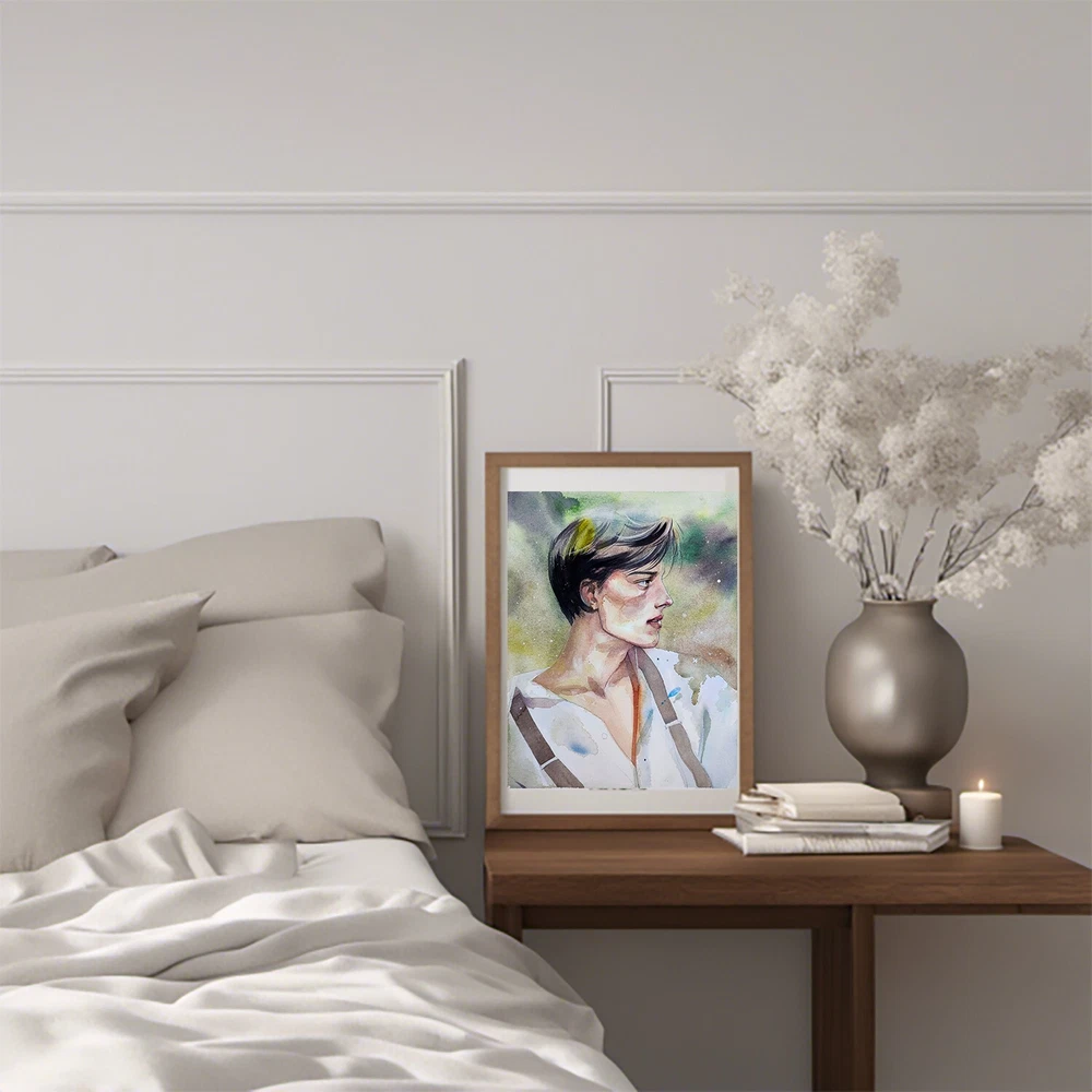 -ORIGINAL painting. This is not a copy or print. -Professional quality artists light fast, transparent watercolor paints and paper. -Signature on the front and on the back. -Size: 32*25 cm. / 12.5*9.8 inches -This painting is not framed. It will need to be framed behind glass. Place on a wall in your home away from direct sunlight. -The envelope comes protected with cardboard, so I make sure that you receive the painting without any damage. -Free shipping with tracking number handsome brunette man painting,handsome boy painting,aestetic watercolor painting,watercolor painting for sale,wall art,original art,original watercolor painting,grunge art,grunge painting,fantasy watercolor painting,fantasy boy painting,fantasy man painting, black hair man painting, man painting, male painting, male art, cozy watercolor painting