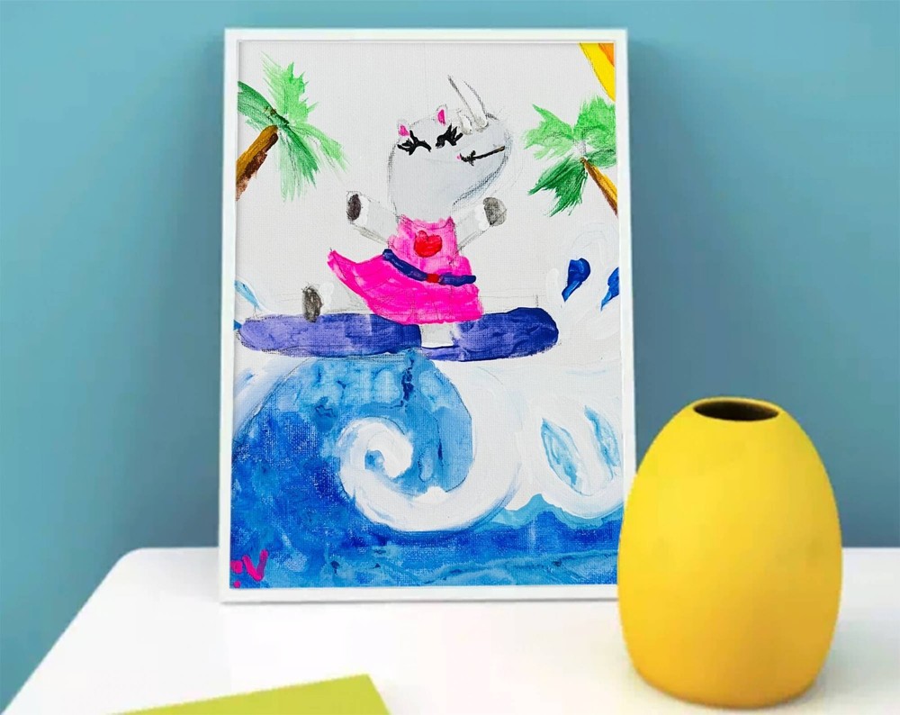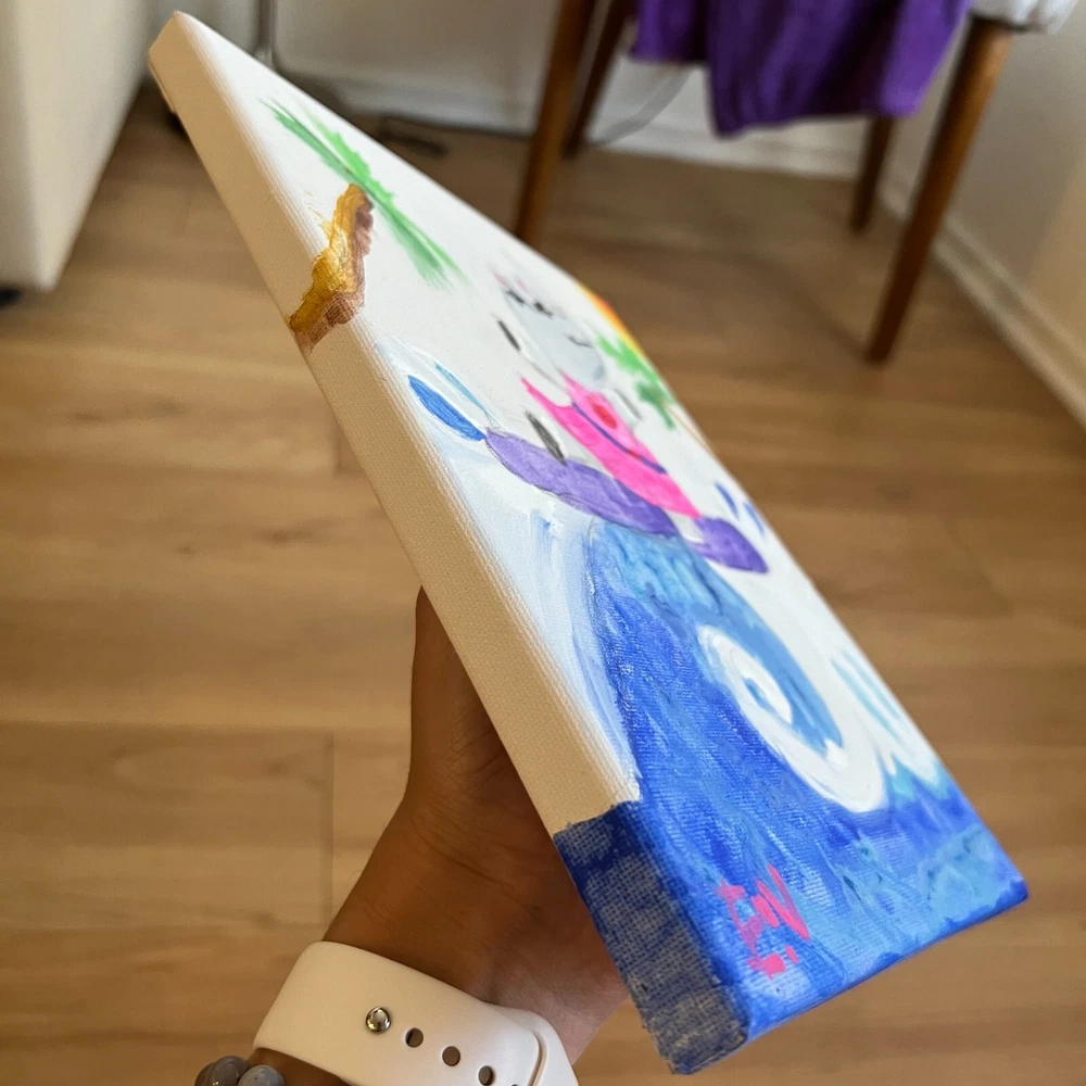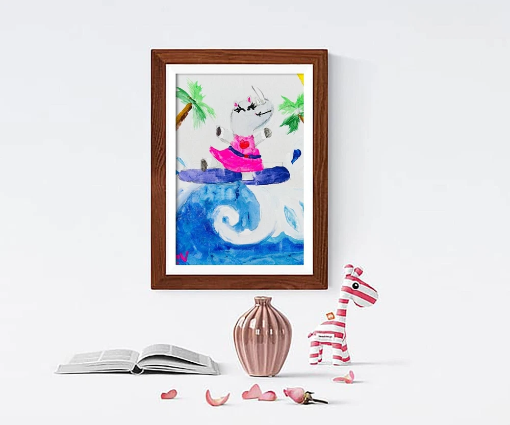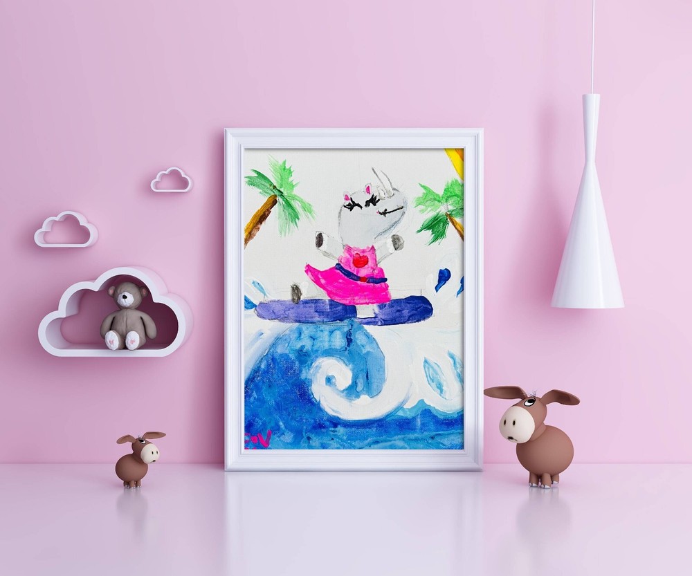 💟Wall Art Canvas Painting "The Wave" Size 8" x 10" from a young artist of my daughter, all the proceeds will go to her gifts and dreams - help the creativity of a little girl (7 years old) to believe in miracles ❇️Materials: high quality acrylic paints, stretch canvas 💟Wave Original Artwork ❇️Shipping: high-quality protective packaging with tracking number 💟Sides are painted, ready to hang ❇️On the front and back sides of the textured wall art - the author's signature. 💟Wrapped around wooden stretcher bars ❇️Fast Order Processing📦 💕✨Happy Shopping✨💕 This stunning painting on canvas measures 8"x10" and features a majestic rhinoceros in a beautiful wave design. Created in 2024 by a talented artist, this original piece is signed and handmade. The contemporary style incorporates elements of figurative art, minimalism, abstract and impressionist techniques, creating a unique and modern look. The painting is perfect for art enthusiasts who appreciate original, high-quality pieces. The acrylic production technique adds depth and texture to the artwork. This single piece is a must-have for any collector or fan of contemporary art.