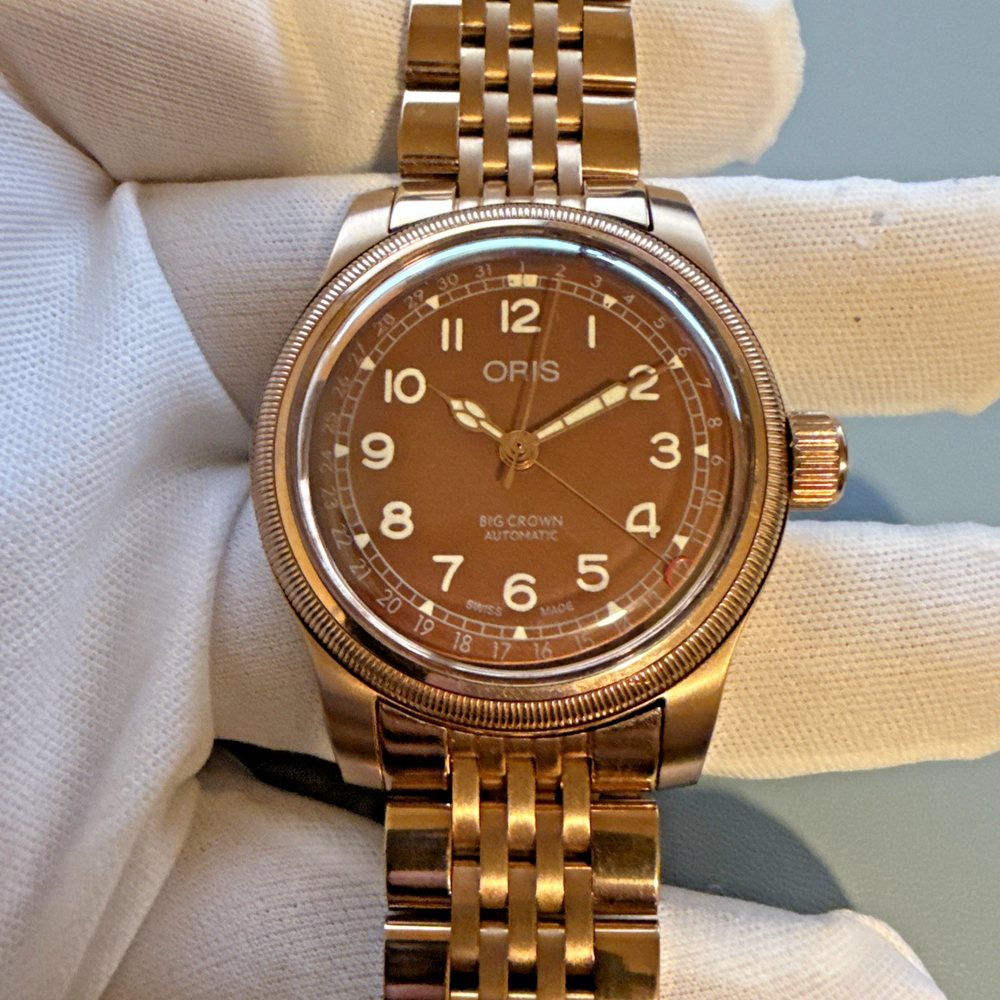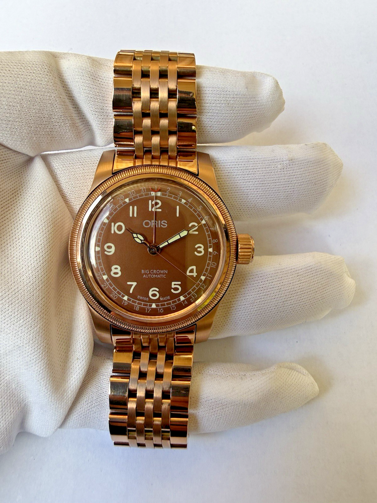 Discover the timeless elegance of the Oris Big Crown Rare Stainless Steel Date Pointer Watch, a testament to classic Swiss craftsmanship. Featuring a robust 39mm stainless steel case and matching bracelet, this watch is a versatile companion for both casual and formal occasions. Its automatic mechanical movement with 25 jewels ensures precise timekeeping, while the analog display provides a clear and easy-to-read timepiece. With its roots in the 1980s, this Oris Big Crown model, reference 26-50292, showcases a round, screwback case designed to durability and longevity. Despite being without its original box and papers, the watch's undeniable charm and Swiss heritage make it a noteworthy piece for collectors and watch enthusiasts alike. All maintenance of the watch has been done by a professional watch maker and it works smoothly. All functions are active. Photos are part of the description. Please have a careful look. There will be no custom duty for orders in the US. This watch will be shipping from within the US.