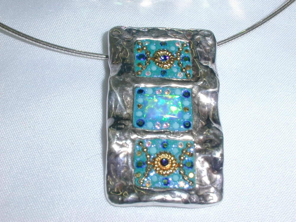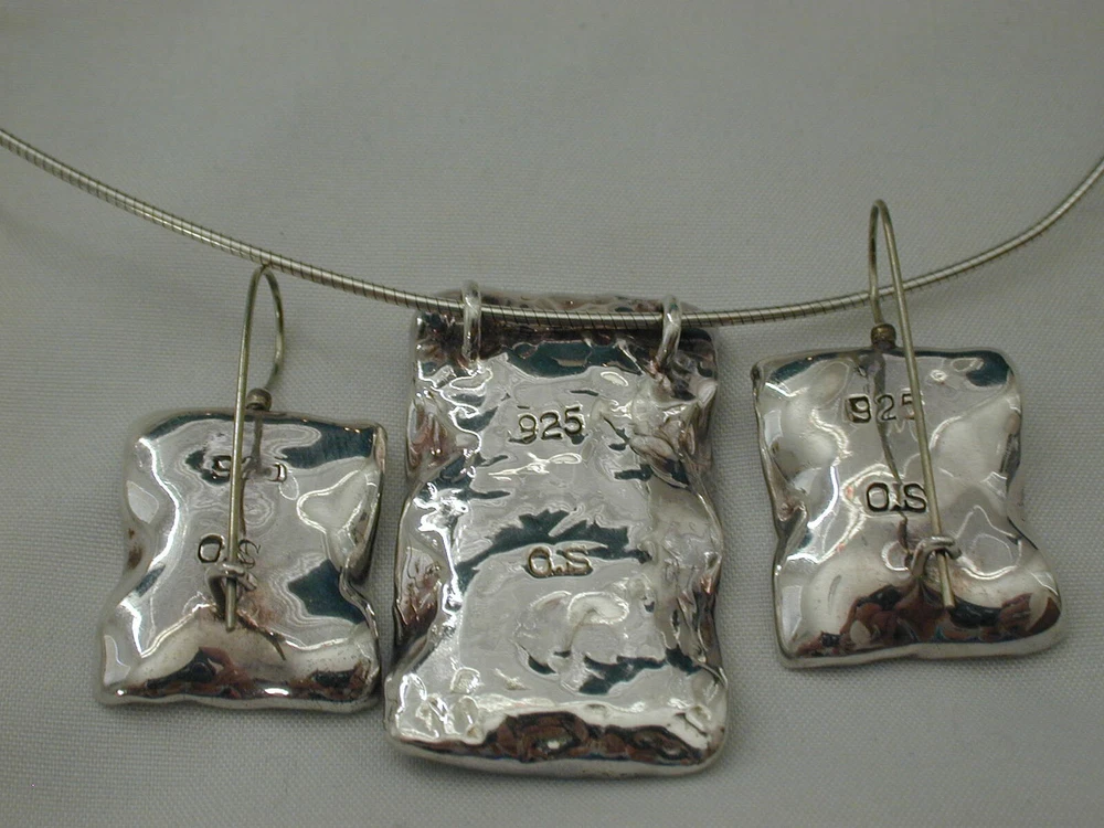 This fabulous jewelry set from OS is a must-have for any fashion-conscious individual. Crafted from high-quality 925 sterling silver, this necklace and earring set features stunning multicolor glass opals as the main stone, with sparkling CZ stones as the secondary. The set is perfect for any occasion, whether it's a night out on the town or a special event. The silver and CZ stones have a beautiful sparkle that will catch everyone's eye. This set is a great addition to any jewelry collection and is sure to impress. DESCRIPTION: Hallmarked: OS 925 Weight: 19.53 Grams Necklace: The pendant measures 1" wide by 1 1/2" tall The fine chain is 16" long Earrings: Measure 3/4" wide by 1 1/2" long with the ear wires They look Amazing on~ worn together or apart. The earrings have French wires for pireced ears. Free US domestic shipping , international shipping is available at actual first class rates. Please see my other listings for more great jewelry.