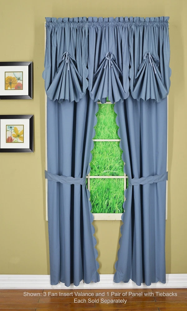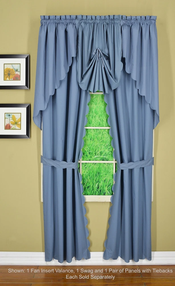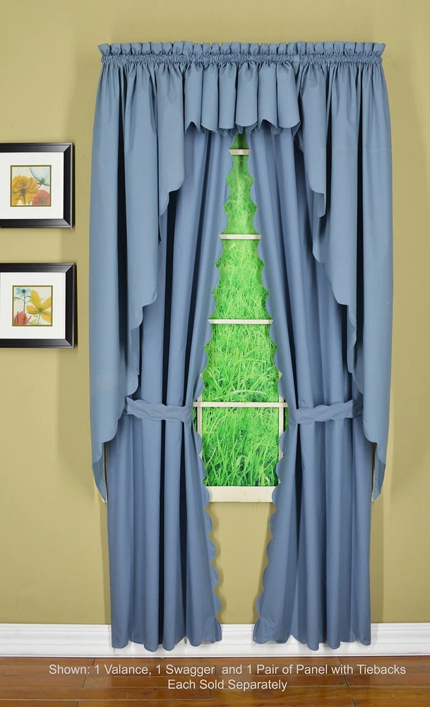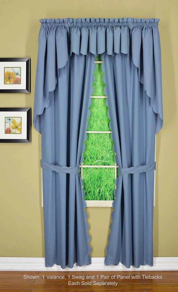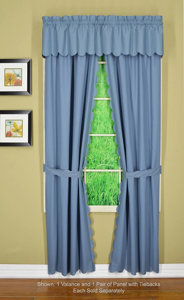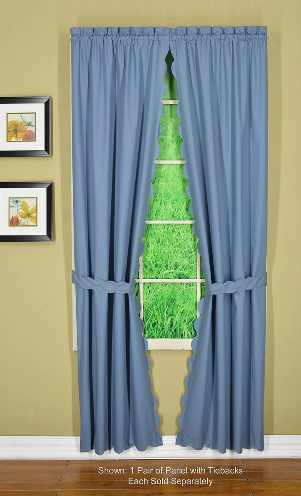 , Orleans Scallop Curtain, Blue 84" Panel Pair and Tieback,4-Piece-Set, 60" W...