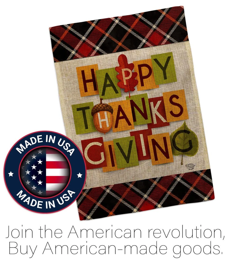 Thanksgiving Beautiful Large House Flag, Wooden Flagpole And Bracket – Wall Mount Complete Set with Wood Banner Dowel with String - 2" x 32" HangerOrnament Collection have variety of House Flag Set for all occasions. Uniquely design for hanging indoor or outdoor use. We are committed to offering you exceptional values. Our customers enjoy displaying our House Flag Set for longer periods. Specification: Theme: Thanksgiving Size: House Flag Set 28" x 40" Size: Decorative FlagPole With Adjustable Angle Flag Bracket Print: Double-Sided Readable: Readable Both Sides Material: Weather Resistant Double Burlap Stitching: Double Stitched Display: Vertical Hang Type: Sleeve Artist: © Eva Lee Special Features: Origin: Made In USAPackage Include: 1 pc x Large House Flag 28" x 40" 1 pc x Decorative Flag Pole 1 pc x Adjustable Angle Wall Mount Flag BracketFor more than a decade, we’ve been dedicated to manufacturing flags with no comparison in quality and beautiful designs. Our flags are made with our Pro Guard material that is soft to the touch and designs can be read correctly on the flag. A feature that our customers will love. We are committed to using eco-friendly inks that won’t leave a foot print in our environment. MPN: OC-TG-HS-192632-IP-DB-03-D-US21-OC 92632 92632 PROUDLY Made In USA - Package And Product Designed In California PURCHASE WITH CONFIDENCE - From Ornament Collection's US Authorized Resellers MADE OF DURABLE - 100% Thick Double Burlap Fabric construction helps resist the wear and tear from frequent use TEXT READABLE BOTH SIDES - House Flag Set Double-Sided Print DURABLE FLAG - Double stitching panels on multiple rows and high quality Sleeve to provide lasting strength VIBRANT COLORS - With UV-Resistant Maintains Its Colors All Season Long FEATURES - Free Flag Pole & Adjustable Bracket Hardware Screw Included!