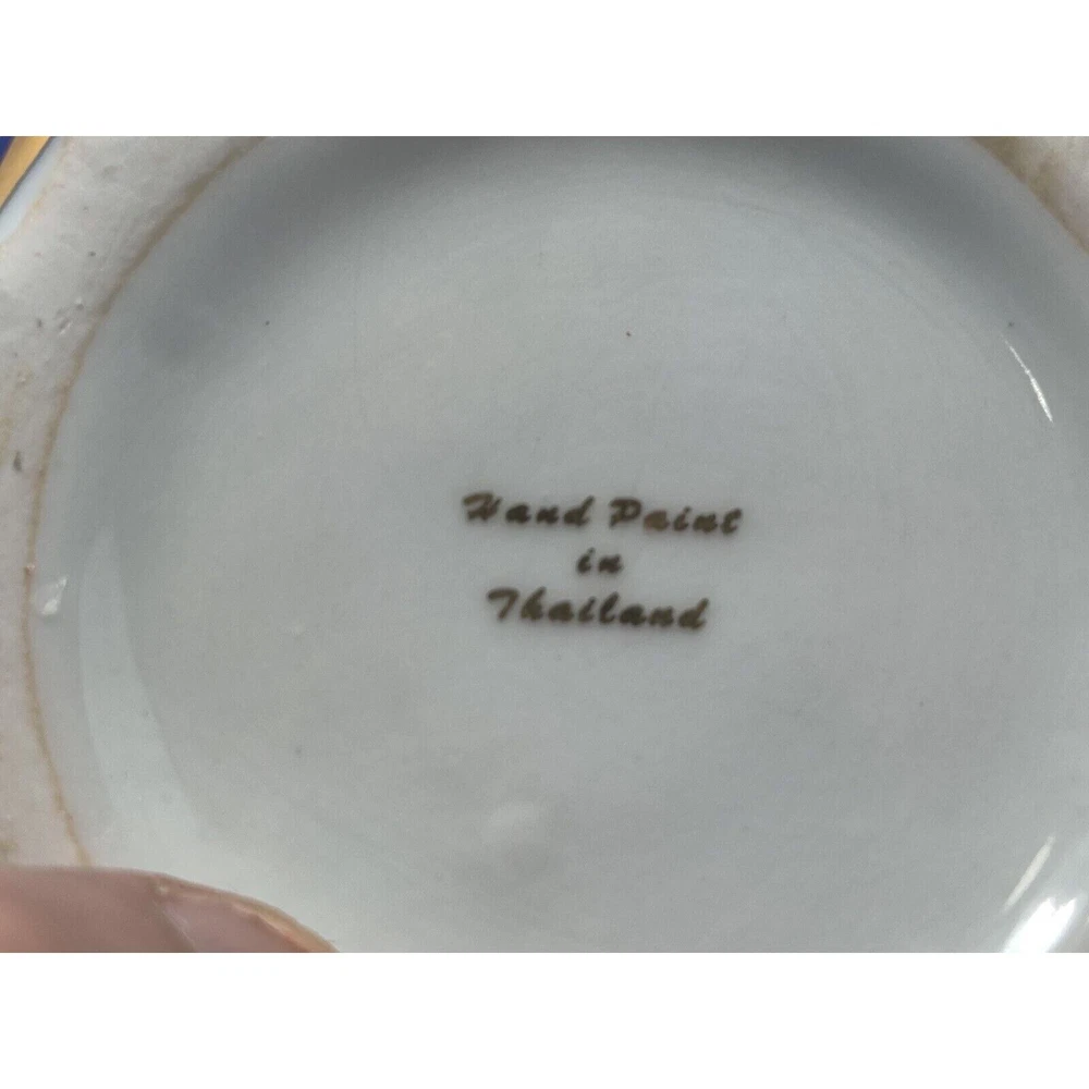 This is a hand painted pumpkin shaped trinket box. The colors are blue, gold, and red in a floral design. The trinket box is in immaculate condition as pictured. Hand painted in Thailand. The box measures 3 3/4" tall, 5" diameter. 5 1/2" tall with lid. CROSSPOSTED THANKS FOR VIEWING!