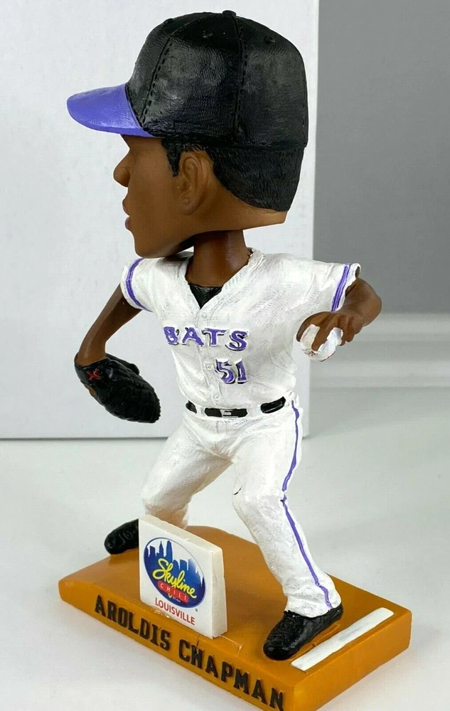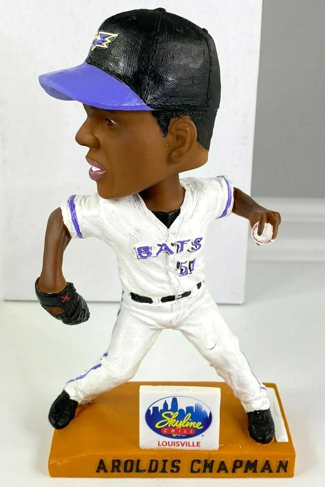 Oroldis Chapman Bobblehead Louisville Bats Reds Baseball 1 Of 2500 7-25-13 New OROLDIS CHAPMAN BOBBLEHEAD NIGHT JULY, 25TH 2013, LOUISVILLE SLUGGER FIELD, CINCINNATI REDS MINOR LEAGUE AAA TEAM, THE LOUISVILLE BATS PROMO LIMITED TO 2500 IN THE WORLD, RARE THIS IS NEW IN BOX, NEVER DISPLAYED. WAS ONLY OPENED TO INSURE GREAT CONDITION VERY COOL DESIGN, NO SIGNS OF ANY ISSUES LONG TIME GREAT PITCHER FOR THE CINCINNATI REDS AND LOUISVILLE BATS THIS BOBBLEHEAD CELEBRATES THE FASTEST PITCH EVER AT 105 MPS OVERALL VERY GOOD BOX WOULD MAKE A GREAT GIFT FOR ANY LOUISVILLE BATS FAN. ADD TO YOUR COLLECTION TODAY! ✨✨✨✨✨✨✨✨✨✨✨ The VinKris Collection is committed to delivering a great experience! We will ship to you with the greatest of care All items are shipped in sturdy boxes We use packing materials appropriate for the product to help ensure safe delivery Shipments to the United States and Protectorates are handled via USPS International shipments will ship via Ebay's International Shipping Program All packages are shipped within 1 business day of payment We ship daily Monday through Saturday Worry free purchases, we stand behind everything we sell with free 30 day returns We have thousands of happy customers and our goal is 100% customer satisfaction We are happy to answer any questions