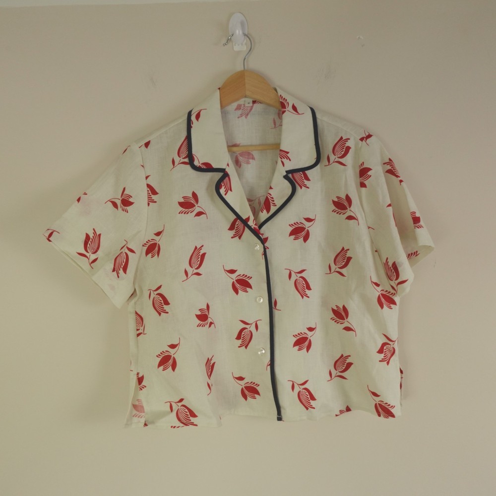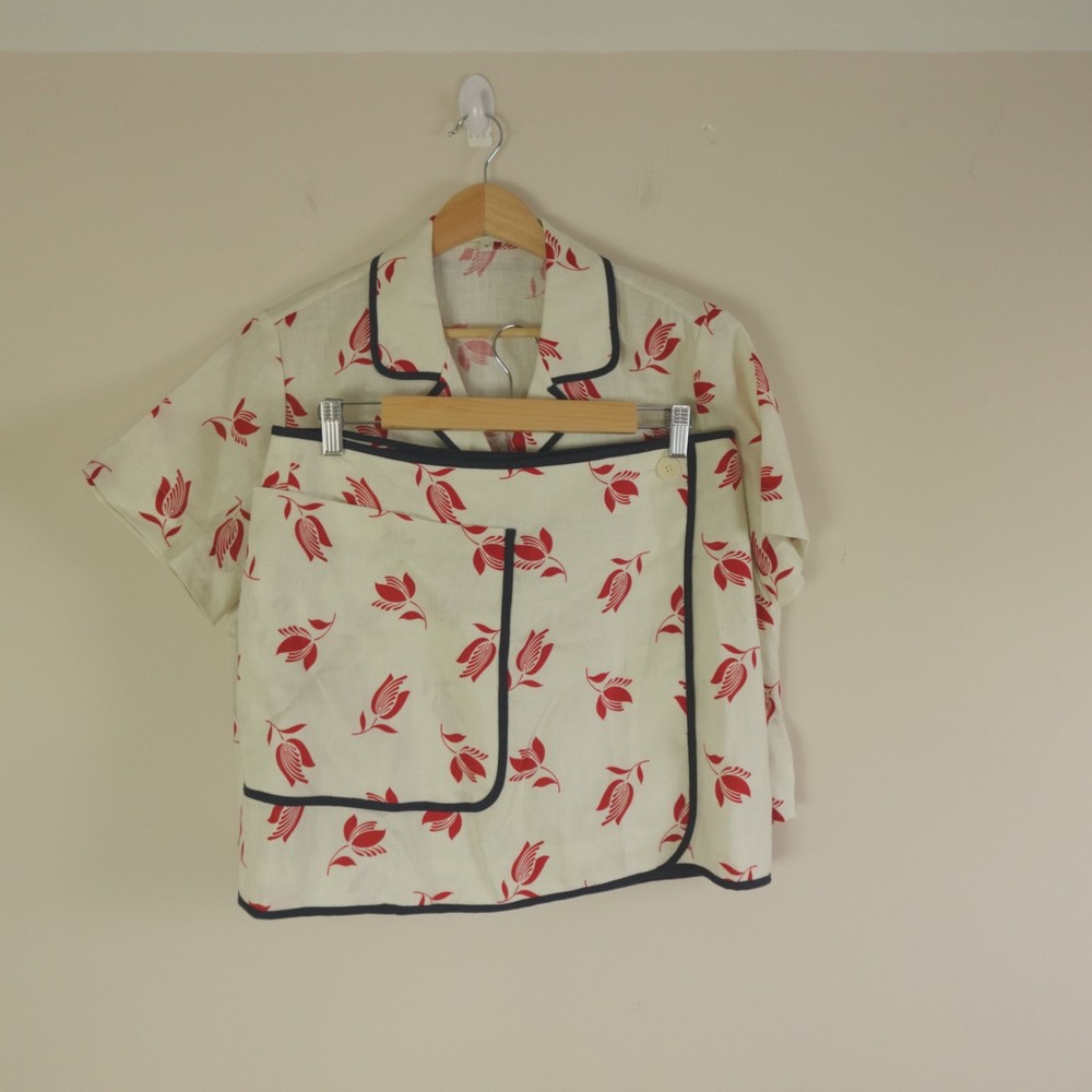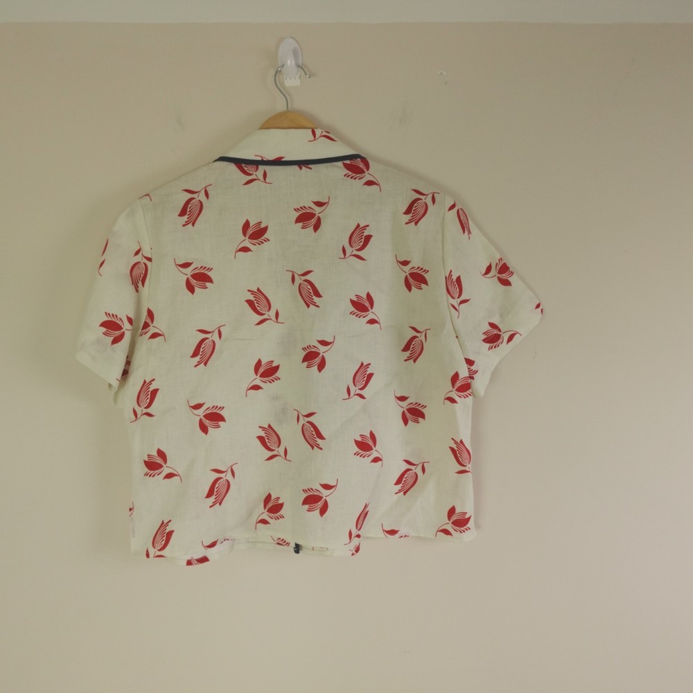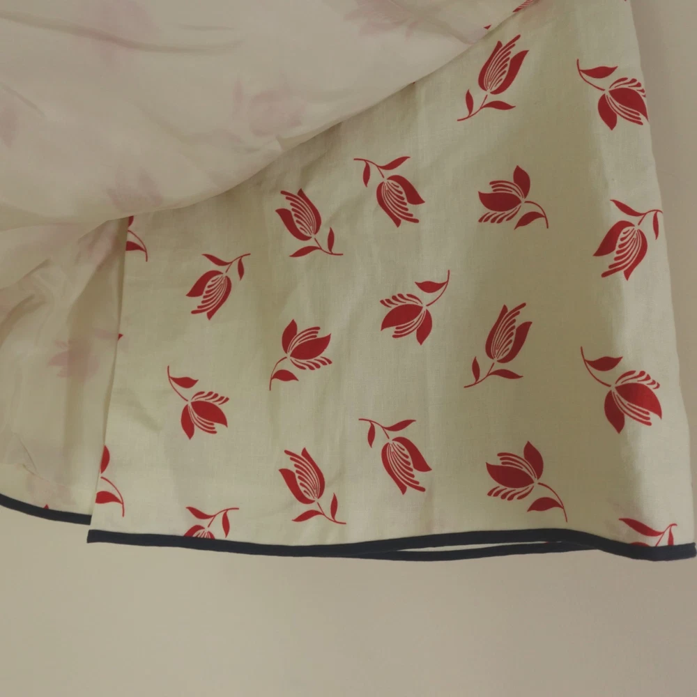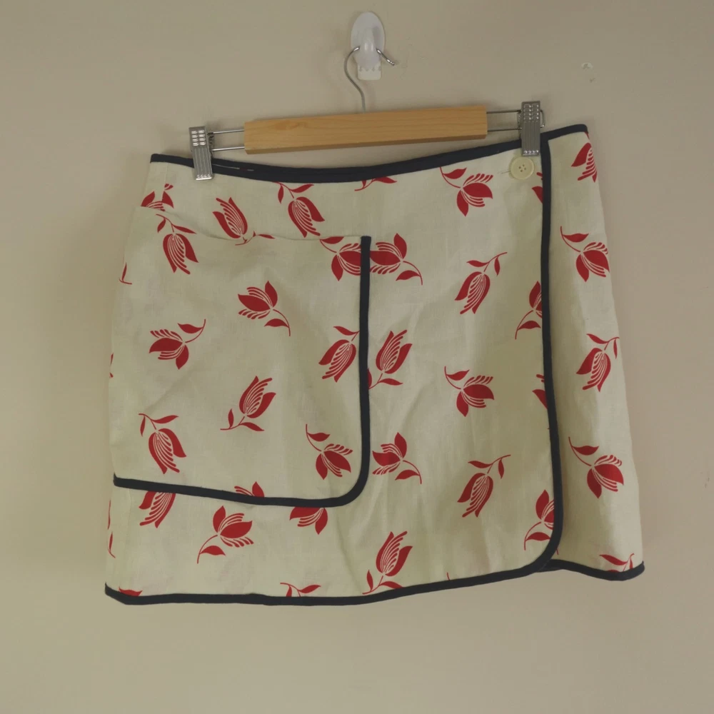 Oroton Skirt Set Womens 10 / 12 AU 6 / 8 US Cream Red Linen Floral Dutch Tulip Hayley Raso Collaboration 2023 Resort Camp Shirt and Wrap Skirt. Original MSRP of ~$450 USD for both pieces. Sold out styles! Note, the top is a size 10 AU (6 US) and the skirt is a size 12 AU (8 US) as pictured. Appears to be a relaxed fit which could likely accommodate sizes Medium to Large, please see photos for measurements to ensure best fit. Excellent like new pre-owned condition, no stains, tears, or signs of wear noted, please review all photos. If we missed something, don't worry, we offer free returns. Just indicate, "just didn't like it," for any reason, and we'll pay for the return. Thanks for visiting!