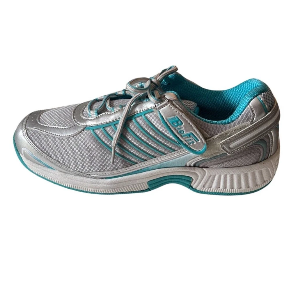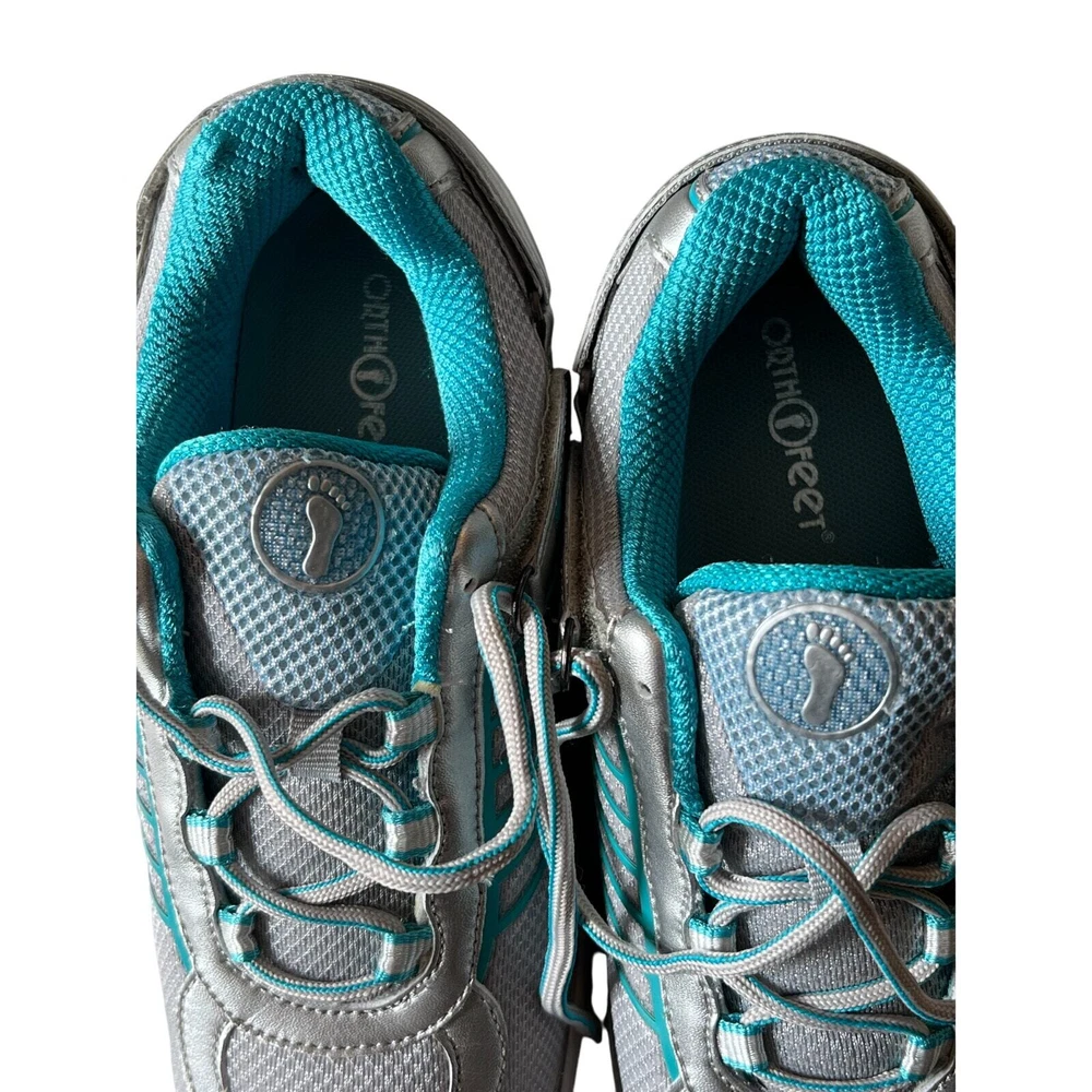 NEW WITHOUT BOX $140 retail Orthofeet Verve Men's Sneaker ** size 9.5 wide ** solid background with striping ** lace up with hook & loop closure at ankle for a secure fit ** upper is made of synthetic material with a white color and turquoise accents ** lining is made of blended fabric ** orthopedic feature that provides support and relief for your feet ** rubber outsole ensures durability and traction ** foam insole provides cushioning and comfort ** all items stored in a smoke-free & pet free home