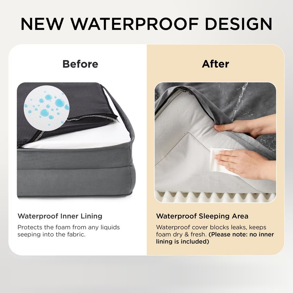 This orthopedic sofa promotes a deep, dreamy sleep with high-density egg crate foam that helps distribute your pet’s weight while providing pressure relief and joint support. The 4-sided bolster helps your pet feel comfortable and secure, with a deep filling that supports their head and neck and a lowered entrance for added accessibility. A waterproof liner protects the foam from drool, spills, and accidents; this zippered cover can be removed in seconds and machine washed for easy care. Wrapped in a velvety-soft flannel fabric that offers soothing comfort for your furry friend. With a non-skid bottom to reduce slips and spills, this bed creates a safe and comfortable space for your pet to rest and recharge.