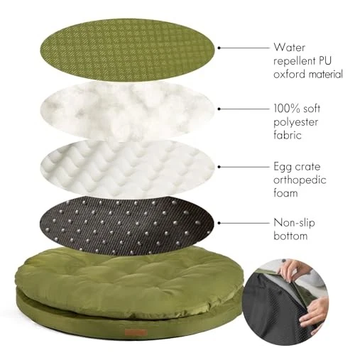 30 Days Return Policy Fast Delivery Trusted seller Home Orthopedic Dog Bed for Large Dogs, Dual Layer Water Repellent Round Pet Bed with Washable Cover Nonslip Bottom (Olive Branch) Product Description Perfect Size for You and Your Pet: This extra-large bed provides ample space for your furry friend to stretch out and for you to join in for some cuddle time. Pet-friendly Design: The egg crate orthopedic foam on this bed offers exceptional support by cushioning pressure points, evenly distributing weight, and promoting optimal air circulation for your pet's comfort and joint health. This dog bed with double layers gives dog-tired pets an extra comfortable place to rest. Practical and Stylish: Made with PU Oxford material, this bed is water repellent and easy to clean. Its classic round design not only looks great but also adds a touch of elegance to your pet's sleeping area. Easy to Care: The removable cover makes cleaning a breeze. Simply toss it in the washing machine with cold water for a fresh and like-new restoration. Certified Safety: With the OEKO-TEX Standard 100 certification, you can be confident that this bed does not contain harmful chemicals, providing a safe and comfortable space for your pet to relax and recharge. The non-slip bottom ensures stability and protection, while the rubber backing provides slip resistance, keeping your pet safe. Shipping Returns Payment Shipping Shipping is FREE to all addresses other than APO/PO boxes in the lower 48 states. All our stock ships from US-based warehouses. Shipped via USPS or UPS (depending on location and package weight) Unless stated otherwise, all orders will ship within 24-72 hours of your payment being processed. Check our feedback to see the great reviews of FAST shipping we offer. Returns As our valued customer, we will do our best to make sure the product you receive arrives to you on time and as expected. If you are not satisfied with your purchase, please contact us within 30 days of receiving your order to process a return. Payment We currently accept payment via eBay managed payments only. Once payment is cleared, we will dispatch your shipment within 1-3 business days. Please refer to the "Shipping" tab for more information regarding shipping speed to your destination.