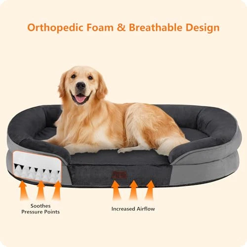 Orthopedic Dog Bed for Large Dogs, Waterproof Dog Sofa with Egg Foam Support,