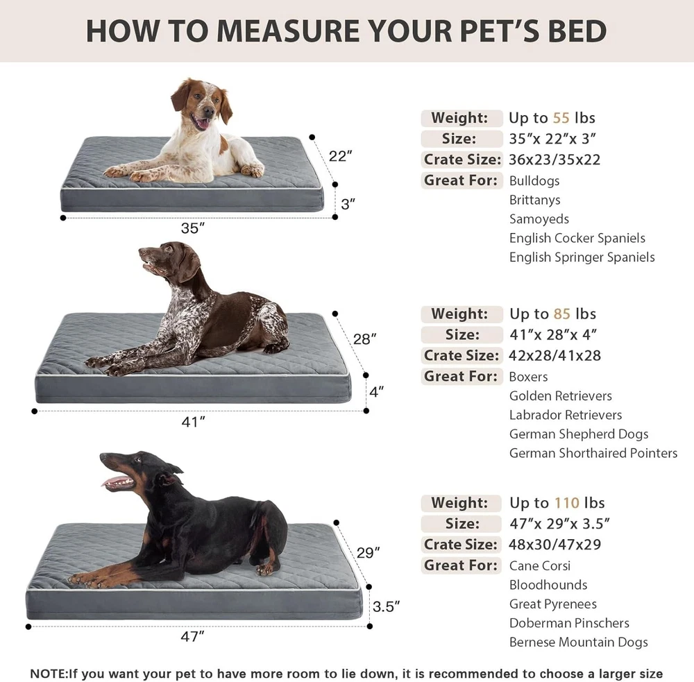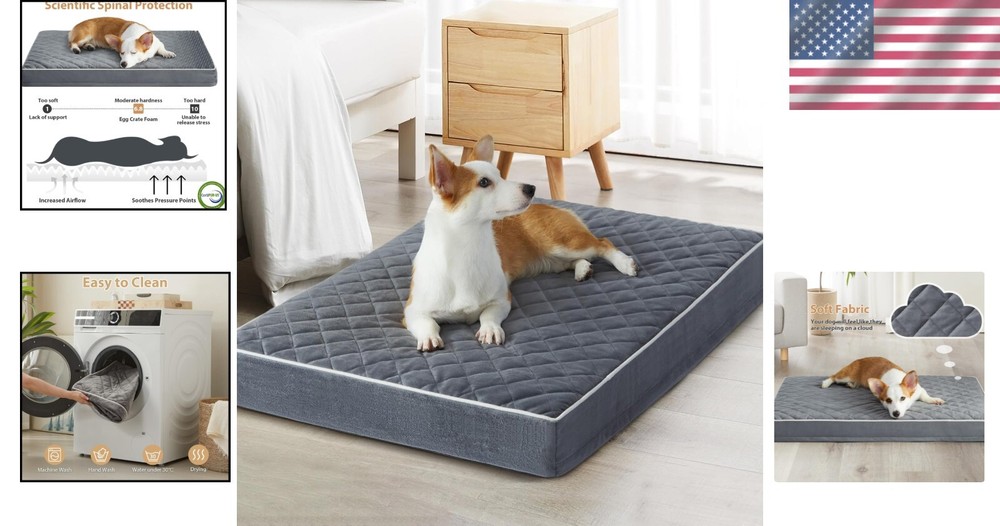 Orthopedic Velvet Dog Bed XXL Waterproof Washable Large Non Skid ‹ › ‹ › ‹ › ‹ › ‹ › ‹ › ‹ › ‹ › Orthopedic Velvet Dog Bed -XXL Waterproof Washable Large Non Skid Key Features: Luxurious Velvet Surface & Quilted Design: Made from soft velvet for a gentle touch on your furry friend’s skin, ensuring warmth and comfort during chilly nights. The unique quilted pattern enhances your home decor. Washable Convenience: Designed with high-quality L-shaped zippers, the removable cover is easy to wash, creating a cleaner and more hygienic environment for both you and your pet. (Note: foam insert cannot be washed.) Orthopedic Support: Crafted with high-density egg crate foam that evenly distributes weight, providing superior pressure relief to alleviate joint pain and arthritis discomfort, ideal for older or recovering pets. Waterproof & Anti-Slip: The waterproof layer prevents urine and saliva from seeping through, maintaining cleanliness. The durable oxford cloth bottom features anti-slip dots to keep the bed securely in place, even during playful moments. Generous Size: Measuring 47 x 29 x 3.5 inches, this bed is perfect for dogs weighing up to 110 pounds, accommodating even the largest breeds comfortably. Shipped in a vacuum-sealed box; allow approximately six hours after opening for optimal expansion. Why Choose Our Orthopedic Velvet Dog Bed? Ensure your pet experiences the ultimate in comfort and support with our Orthopedic Velvet Dog Bed. This exquisite bed is not just designed for looks; it combines luxury, practicality, and health benefits to provide your furry friend with a restful sleep. With its washable features, waterproof layer, and orthopedic foam, it promises a clean, cozy, and supportive environment for your beloved companion. Bring home the perfect blend of elegance and function, and give your pet the comfortable life they deserve. Order the Orthopedic Velvet Dog Bed today! Shipping Free & Fast Shipping - We offer free shipping to most of the USA with a normal delivery time of 3-7 days. However, due to the current situation, additional delivery time (up to 3 weeks) may be required for some items. Alternative Carriers - We may use alternative carriers (e.g. USPS, FedEx, UPS, etc.) to ensure your package arrives safely and on time. Due to the use of multiple carriers, we are unable to provide a tracking number automatically. Handling Time - Orders are processed and shipped within 1-2 business days of receiving cleared payment. Shipping Restrictions - Shipping to Alaska, Hawaii, Puerto Rico, Guam, and other US territories may incur shipping charges or delivery restrictions. Please contact us before ordering, or your order can be refunded/cancelled. State Restrictions - There may be restrictions based on your state of purchase. For example, certain items may not be shipped to California due to state regulations. Contact for Tracking Updates - If you require tracking updates or have any concerns about the delivery of your order, please feel free to contact us, and we will be happy to assist you. Return 30-Day Hassle-Free Returns - We want you to be completely satisfied with your purchase. If you are not, you can return the item within 30 days of receiving it for a full refund or exchange. Easy Return Process - To start a return, simply contact us and we will provide you with a prepaid return shipping label and detailed instructions. Restocking Fee - There are no restocking fees for returns. However, the buyer is responsible for return shipping costs if the return is not due to a seller's error. Refund Processing Time - Refunds will be processed within 5 business days of receiving the returned item in its condition. Payment We accept all major credit cards, PayPal, and Apple Pay for your convenience. Your payment information is secure and encrypted to ensure a safe and seamless transaction. Please complete your payment within 3 days of purchase to avoid any delays in shipping. Feedback Your feedback is extremely important to us. We strive to provide the best products and customer service possible. If you are satisfied with your purchase, please take a moment to leave us a positive review. If you have any concerns or issues with your order, please contact us before leaving negative feedback. We are committed to resolving any problems and ensuring your satisfaction. Contact Us If you have any questions or concerns, please feel free to out to our customer support team. You can contact us through the eBay messaging system. We are available Monday to Friday, 9:00 am to 5:00 pm EST, and we will do our best to respond to your inquiry within 24 hours. Buy it now and enjoy a pleasant shopping experience! Unit Quantity: XXL Features: Waterproof Dog Size: XXL Type: Dog Bed Material: Velvet