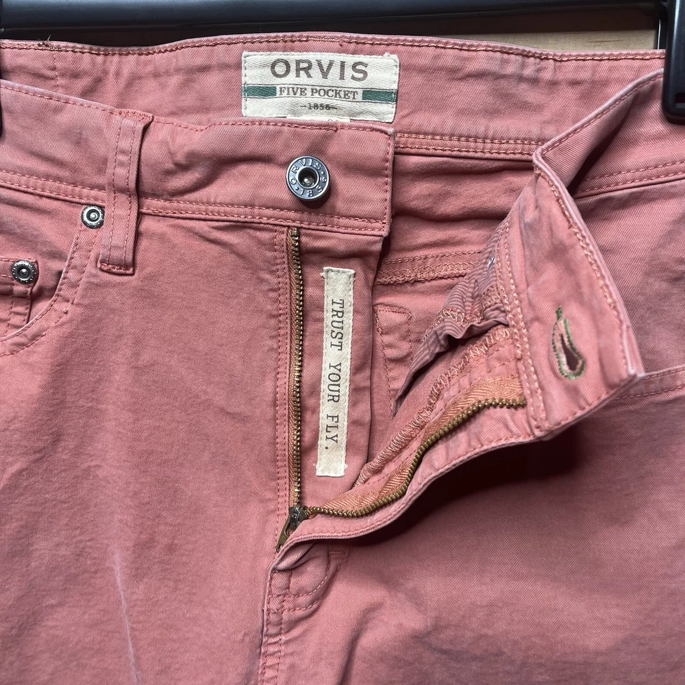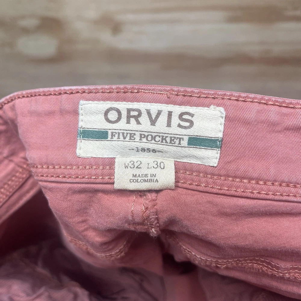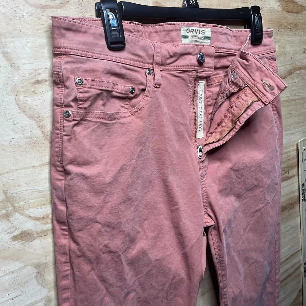 Orvis Five Pocket Pants Men 32x30 Pink Straight Leg Chinos Stretch Workwear