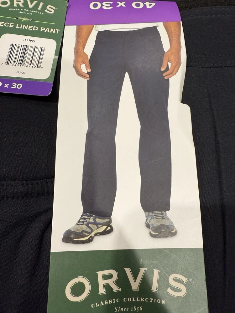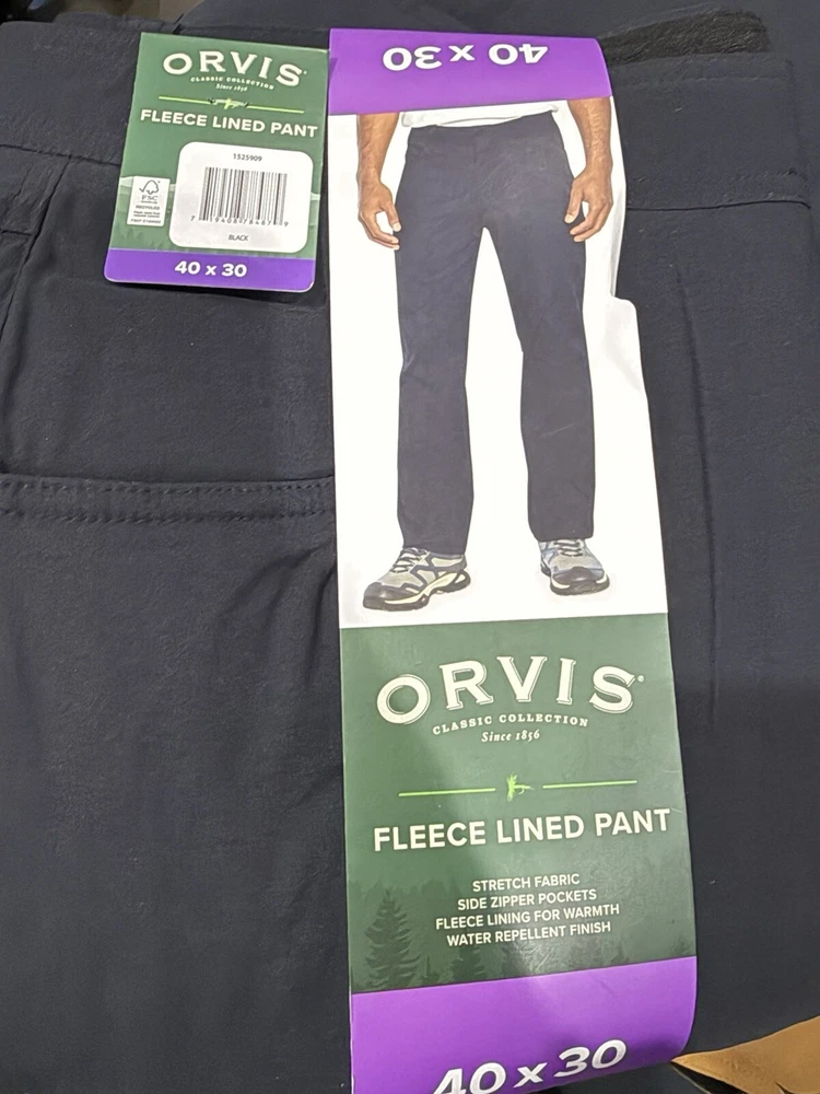 New authentic original Orvis Men’s Fleece Lined Pant Stretch Fabric Water Resistant RG Fit W40L30 Color: black Size Men’s 40x30 USA 🇺🇸 Sk110-1312we