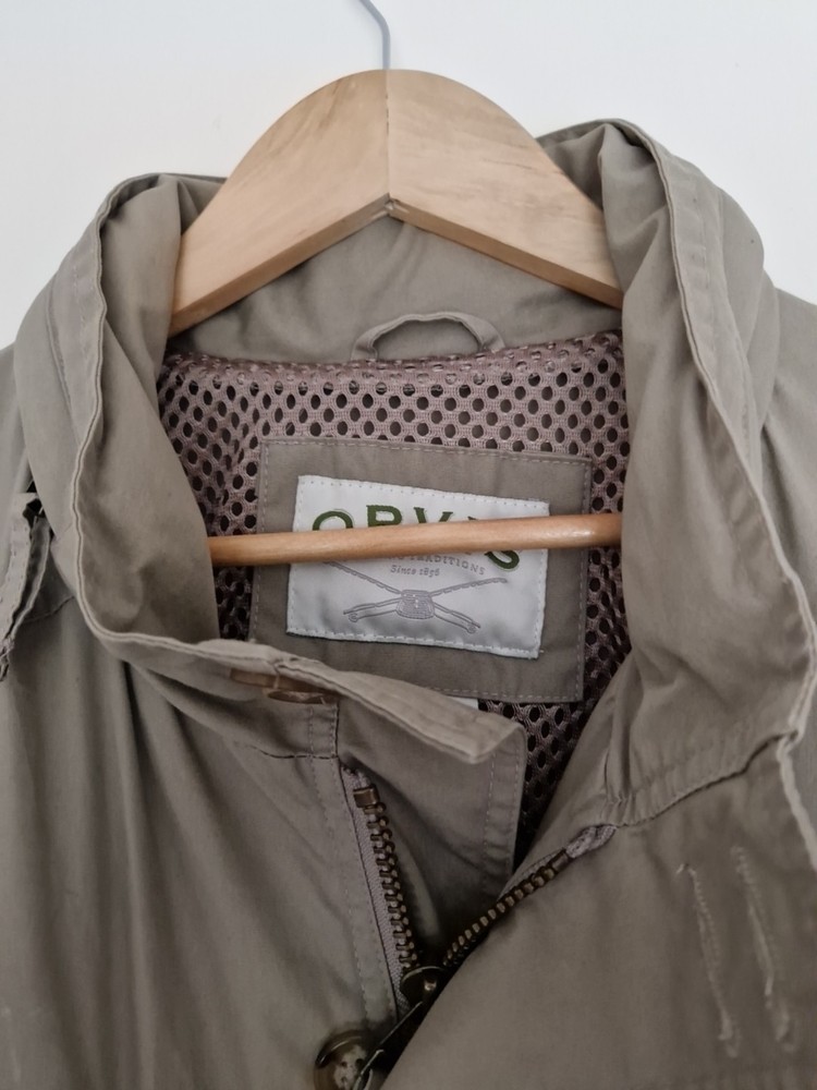 This Orvis Men's Safari Style Jacket in XL size is made from durable cotton with a canvas fabric type, perfect for casual wear. The beige colour adds a touch of versatility to the jacket, while the polyester insulation material ensures warmth. With multiple pockets for added convenience, this jacket combines practicality with style in a safari-inspired design. Easy to care for with machine washable instructions, this jacket from a trusted brand like Orvis is a great addition to any man's wardrobe.