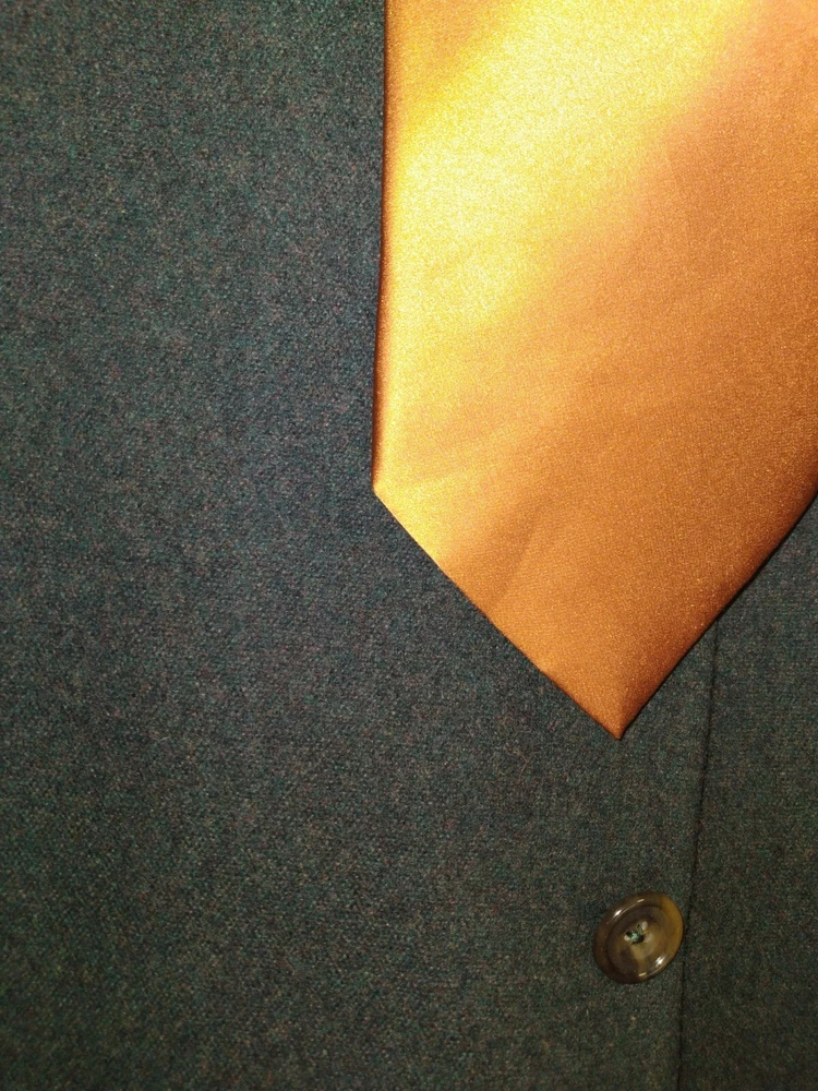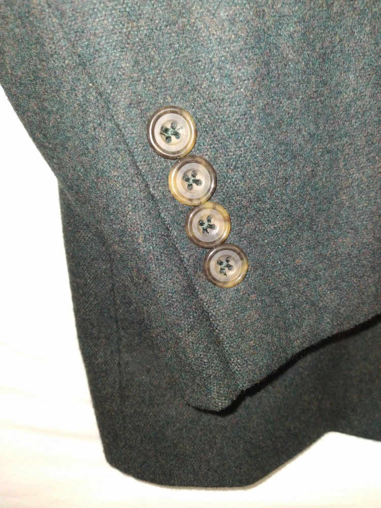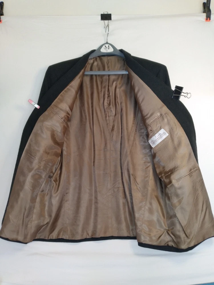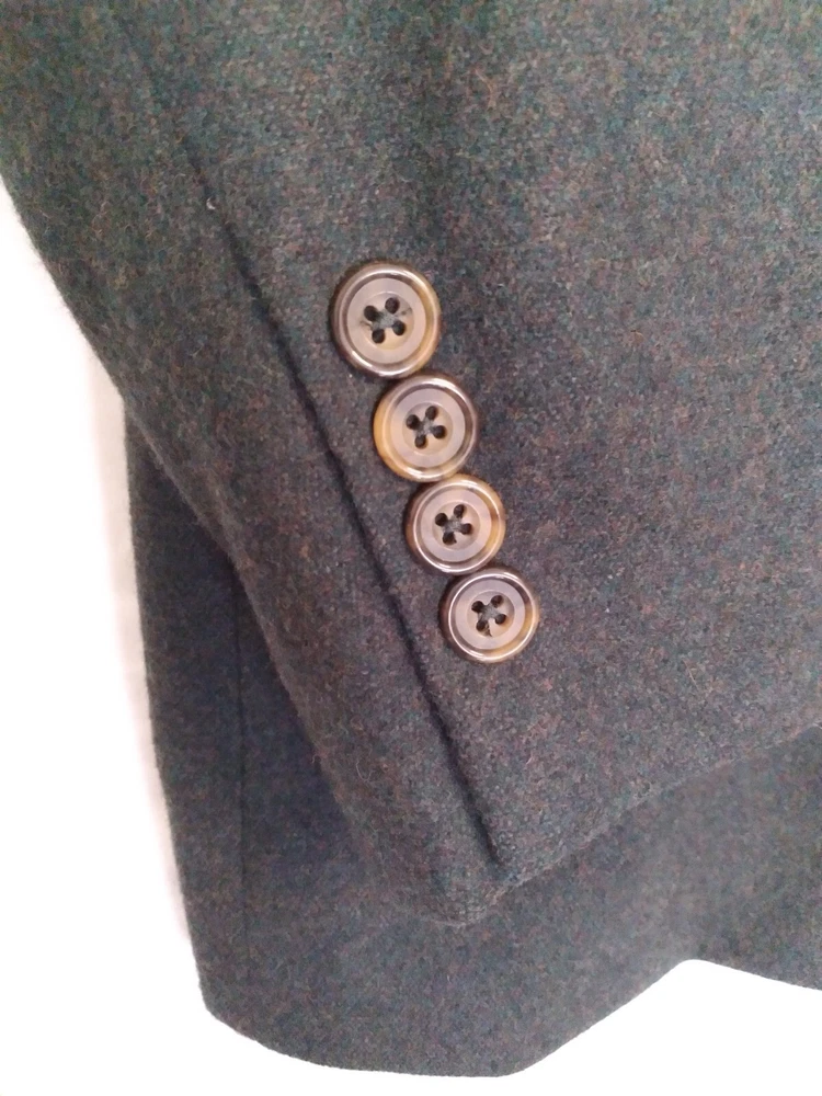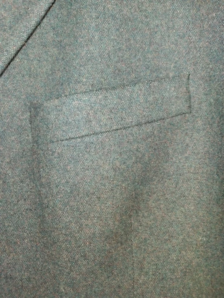 Oscar de la Renta Sport Coat NO size tag ESTIMATED/measured at 46 regular Dark, dark green with flecks of brown and burnt orange Lightweight wool Necktie pictured comes with. Length laying flat, bottom of collar to hem = 33 inches Shoulders, laying flat = 19 Chest, laying flat = 23.5 Sleeve = 26