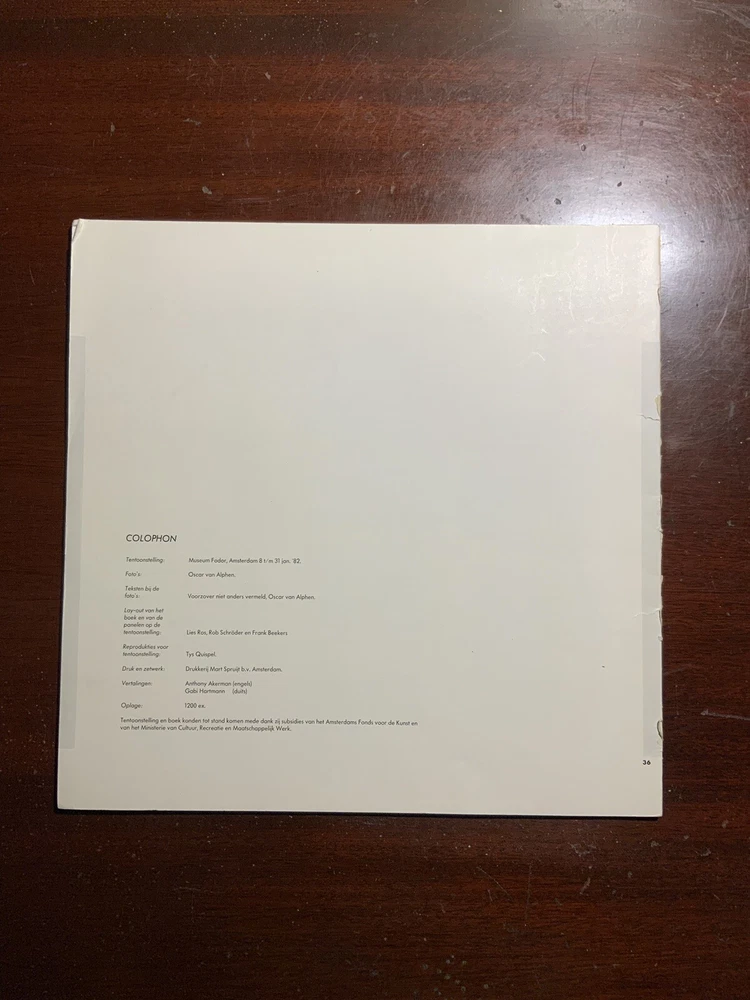 Auction Wizard 2000 Listing Template - AW2KLOT#:3478 Title/Info: Oscar van Alphen Het Moment Voorbij 1982 Art Book Catalog. Oversize paperback. 31 pages. 11.5" x 11.5" Additional Info: Exactly the same as pictured. Scanner may not pick up all flaws. (Shelf 6.1 ) Shipping is FREE to the United States! No international shipping! This volume is too large to ship internationally. Payment must be made by PayPal and must be received within four days of auction close.