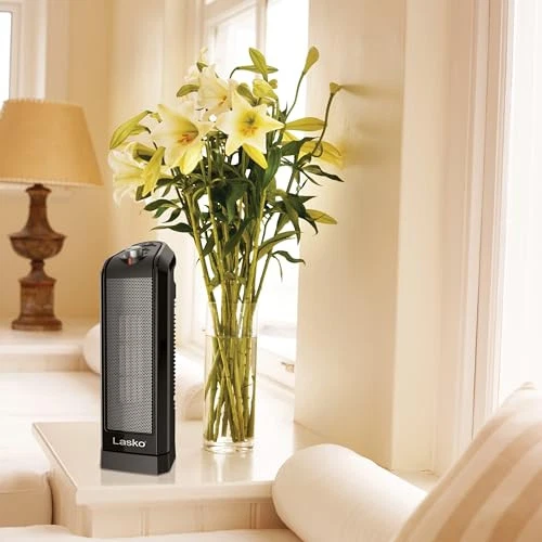 This powerful ceramic space heater from is ideal for tabletop or floor use. With 1500 watts of comforting warmth, this small heater will make you feel cozier and more comfortable in your home office, living room, bedroom—almost any room in the home. This portable heater features an adjustable thermostat, easy-to-use controls, widespread oscillation, 2 heat settings, and a built-in carry handle. When the weather turns chilly, save on your overall heating costs by warming the room you're in and turning down the whole-house thermostat. This heater is equipped with safety features, including overheat protection and cool-touch housing. Comes fully assembled, plus a 3-year limited . ✅【HEATS UP A ROOM FAST】Powered by an energy efficient ceramic heating element this portable space heater has 2 quiet heat settings, High (1500W) and Low (900W). The optional widespread oscillation helps evenly disperse warmth to quickly eliminate cold spots in your home, apartment, garage, basement or any room up to 150sq. ft. ✅【KEEPS YOU NICE & WARM】At 15.7H x 6L x 5W inches, this space heater easily fits on a table, desk, counter top or nightstand and is ideal for warming up the bedroom, home office, kitchen or anywhere warmth is wanted to save on whole-house heating costs. The manual thermostat lets you control your desired personal comfort level. ✅【EASY TO USE】Comes fully assembled. Simply take it out of the box and plug the 6 ft. 2-pronge cord directly into a standard 120V wall outlet. Choose from 2 settings: HIGH/LOW. Built-in handle makes it easy to move from garage to basement. ✅【BUILT-IN SAFETY FEATURES】Heater is ETL listed and features Automatic Overheat Protection to take the worry out of using the heater for long periods of time. The self-contained, self-regulating ceramic heating element helps keep the exterior housing cool to the touch, making a safe choice for chilly days and nights. ✅【TRUSTED FOR GENERATIONS】is an industry leader in personal home comfort and has been making quality products for over 100 years. Why not get a second heater for the college dorm, the den, or living room, and save on your whole-house heating costs? Makes for a great gift.