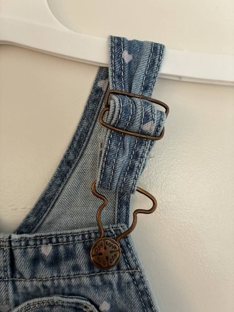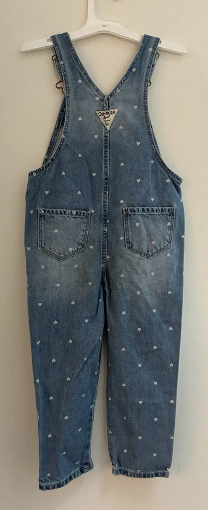 Color: Blue Style: Overall Country of Origin: Bangladesh Size: 4T Features: Adjustable Strap, Comfort, Easy Care, Lightweight, Pockets Seller Notes: “In very good condition. Free of rips or stains.” Season: Fall, Spring, Winter Brand: OshKosh B’gosh Number of Pieces: 1 Piece Pattern: Hearts Theme: Heart, Love Occasion: Casual Material: 100% Cotton Garment Care: Machine Washable Type: One-Piece Fabric Type: Denim Closure: Hook & Eye Neckline: Square Neck Sleeve Length: Sleeveless Department: Girls