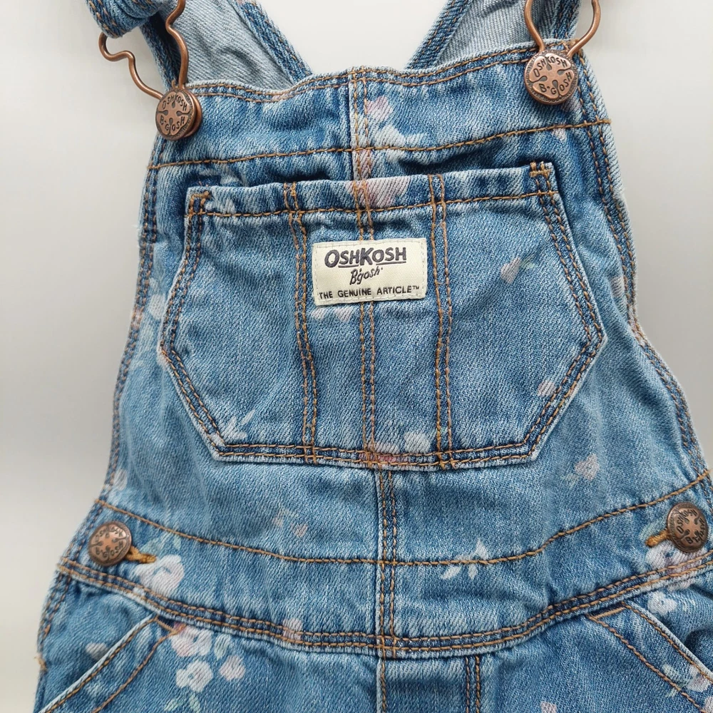 $ 6.3490s Vintage Oshkosh B'Gosh Blue Denim Overalls Girls Sz 6 Bow Red Plaid