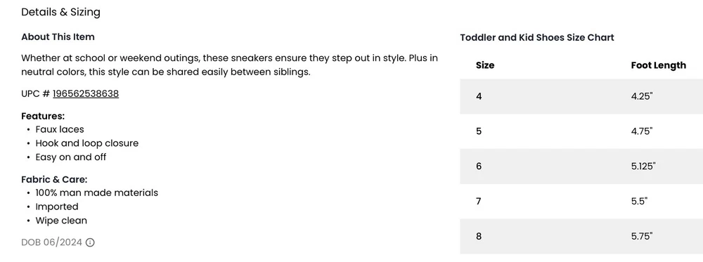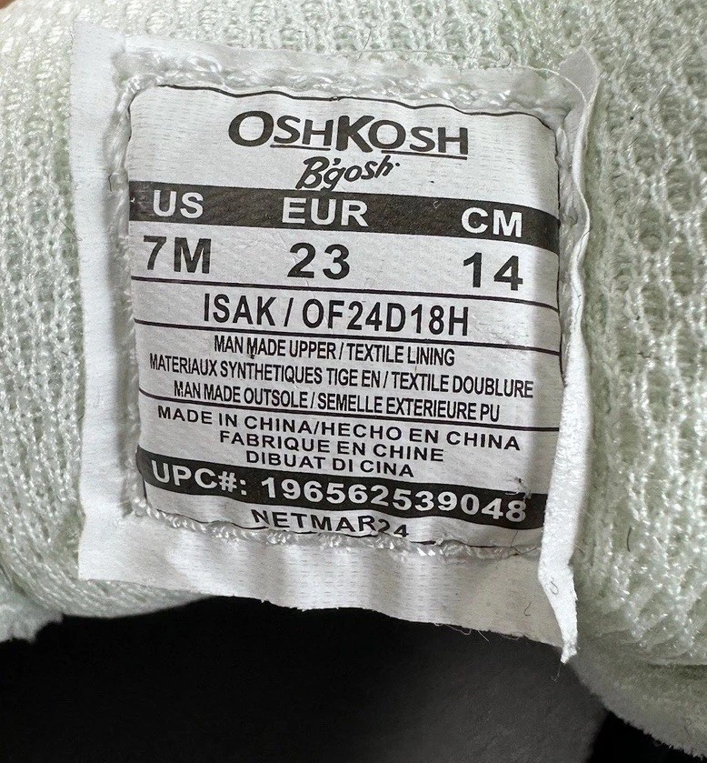 OshKosh Toddler Easy-On Casual Sneakers Size 7. Hook and Loop with faux lace look. New with tags in excellent condition.