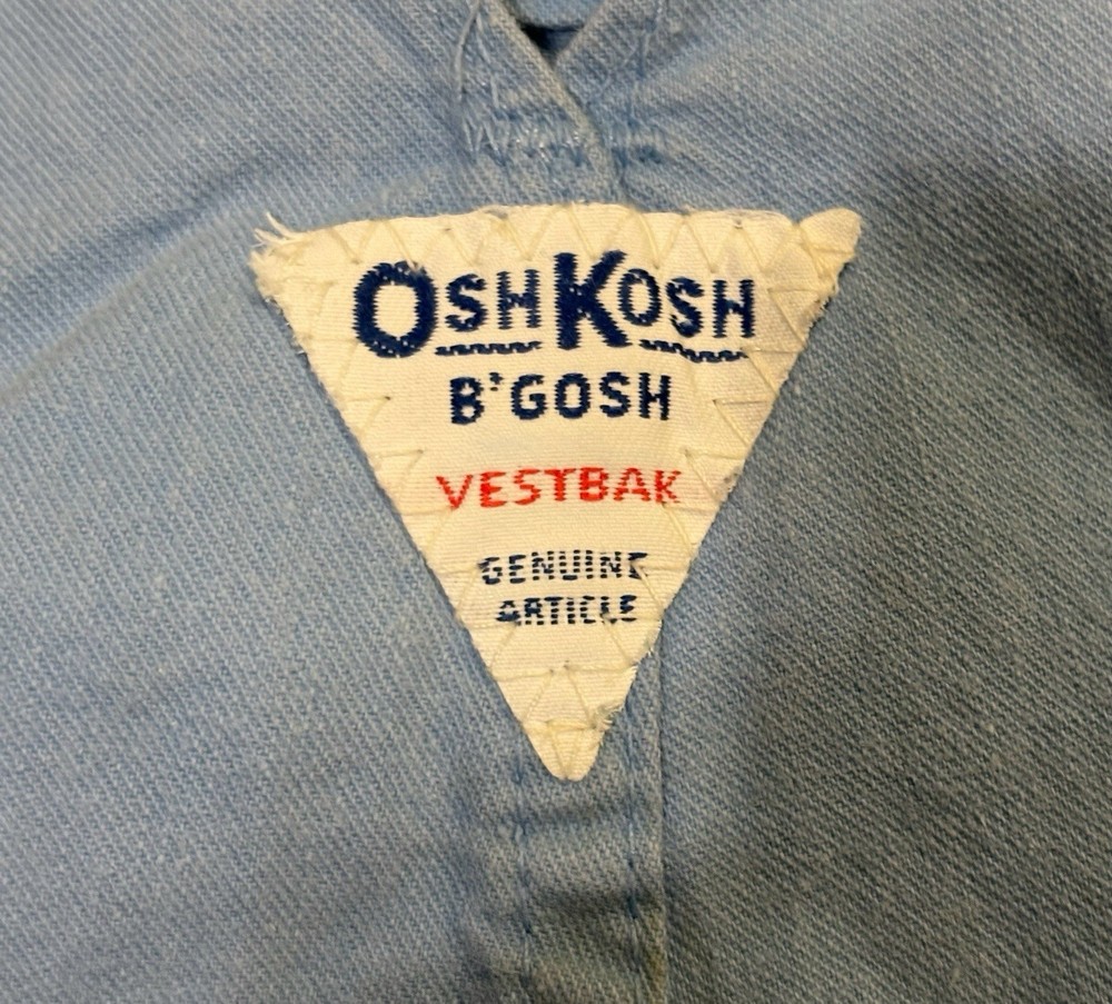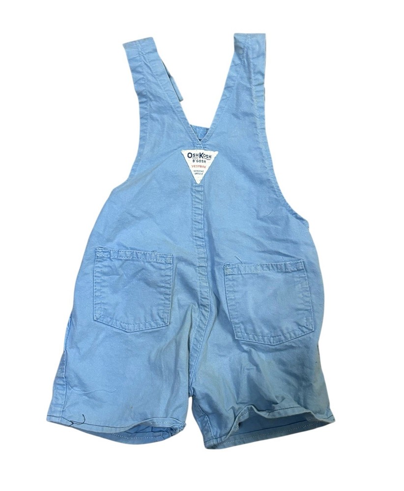 VTG Oshkosh B’Gosh Vestback Overalls Light Blue Khaki Size 2T USA.