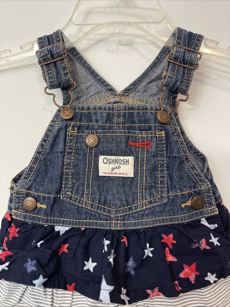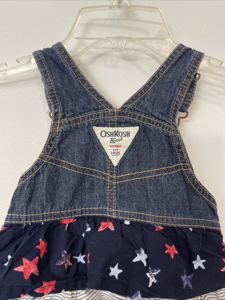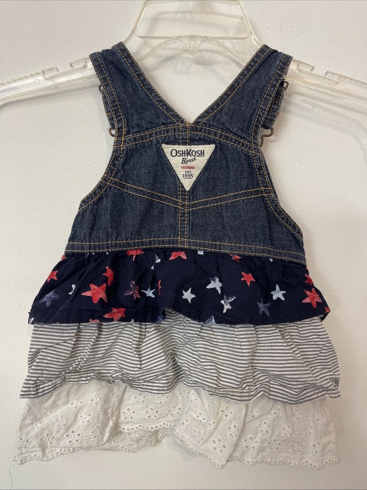 Oshkosh Girls 2t Blue Denim Cotton Sleeveless Overall Dress! A5350