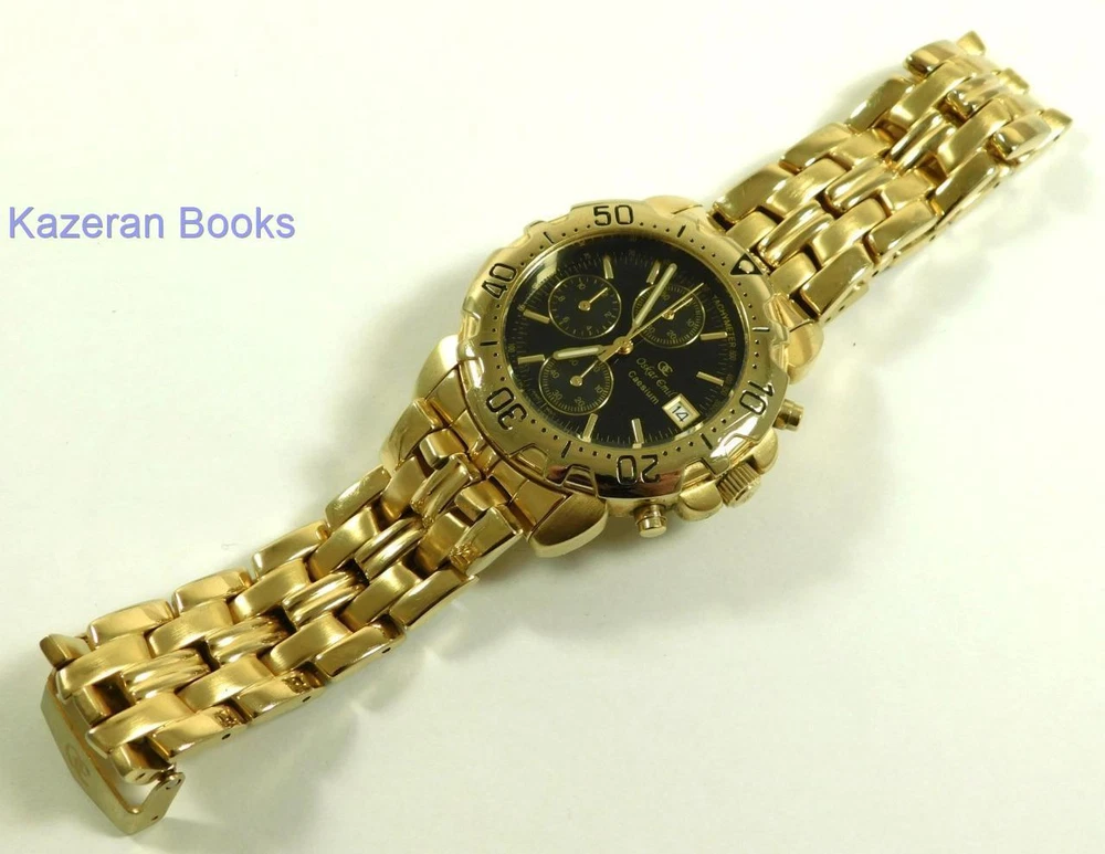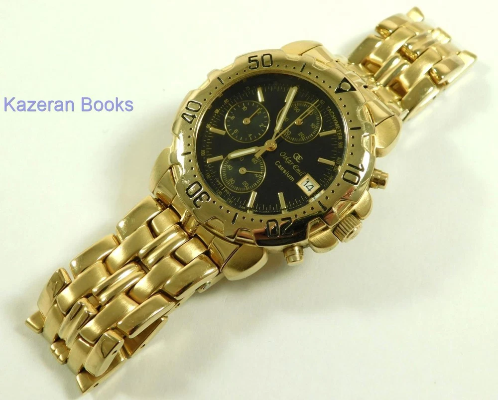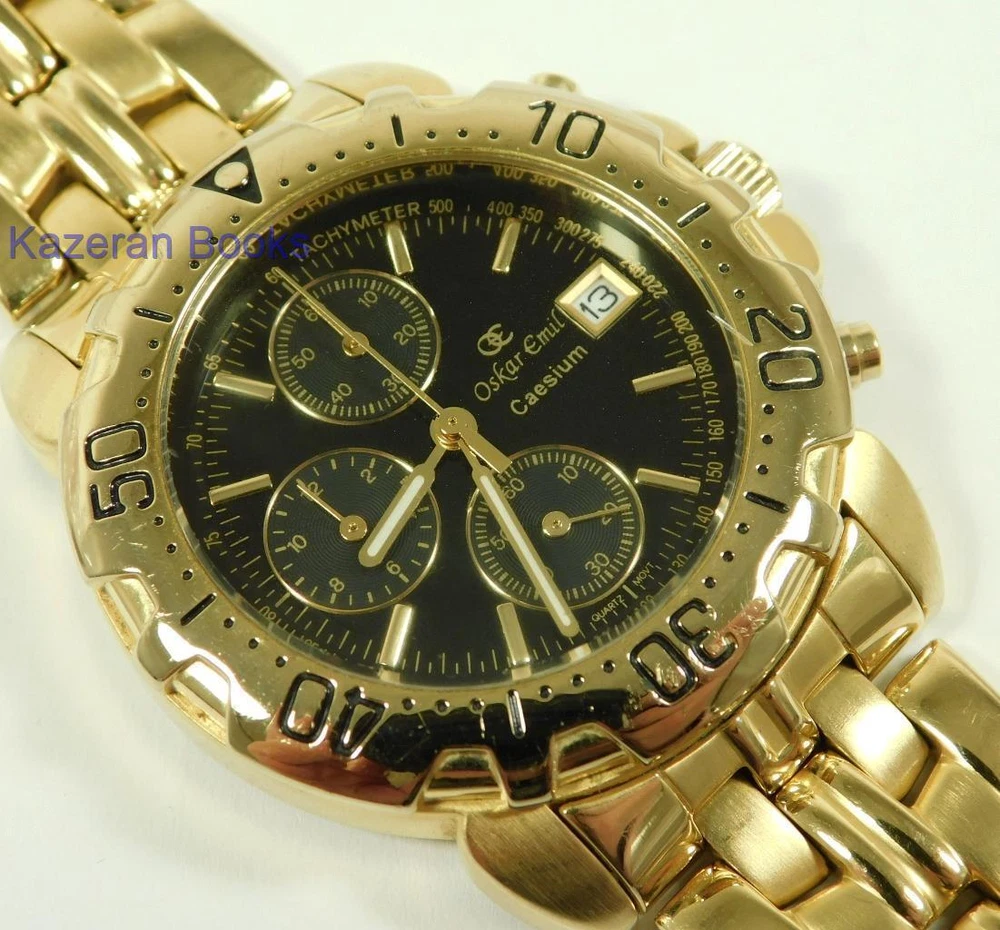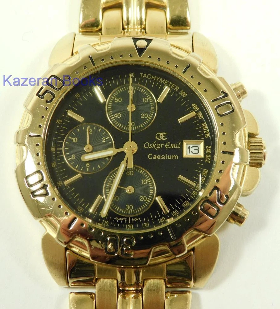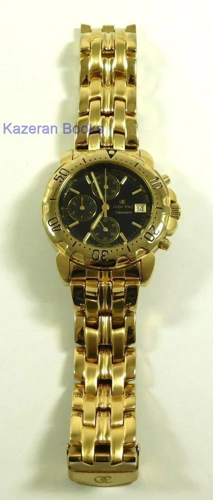 A Gentleman's "Oskar Emil - Caesium" 23ct Gold Plated, Limited Edition Black Dial Quartz Chronograph, Date Wristwatch The Watch is in full working order and has just been fitted with a new battery. The watch case measures approx 37mm across not including the crown, buttons or lugs. 20mm lug width. The strap will fit maximum 7.8" wrist. Chronograph function works as it should as does the date. The item is a limited edition, number; 12486. The quartz movement is a Miyota 0S10. Good general condition, some signs of wear. Please take a look at the photos as they form part of the description. Working Oskar Emil Caesium Quartz 23ct GP Chronograph Wristwatch Ltd Edition Working Oskar Emil Caesium Quartz 23ct GP Chronograph Wristwatch Ltd Edition Click images to enlarge Description A Gentleman's " Oskar Emil - Caesium " 23ct Gold Plated, Limited Edition Black Dial Quartz Chronograph, Date Wristwatch The Watch is in full working order and has just been fitted with a new battery. The watch case measures approx 37mm across not including the crown, buttons or lugs. 20mm lug width. The strap will fit maximum 7.8" wrist. Chronograph function works as it should as does the date. The item is a limited edition, number; 12486. The quartz movement is a Miyota 0S10. Good general condition, some signs of wear. Please take a look at the photos as they form part of the description. THIS IS A UK SALE IN GBP STERLING. Whilst I try to list all the negative and positive aspects of an item in my listings it remains possible that some small aspect may be missed.You would be well advised to remember that unless I list something as mint it will be a used and/or antique item which may have the marks of day to day existence upon it, for example: the odd mark here and there, slight fading etc. Please Note; with all the watches We sell, we make no claims regarding continual accuracy of time keeping. Antique & Vintage watches may need servicing, even if they are in good running condition. Unless otherwise stated they may need to be cleaned, oiled, adjusted and or timed. We do not guarantee any watches to be waterproof.. We Are Always Happy To Combine Multiple Purchases. 17462 Pictures sell! Auctiva offers Free Image Hosting and Editing. 300+ Listing Templates! Auctiva gets you noticed! The complete eBay Selling Solution. Track Page Views With Auctiva's Counter