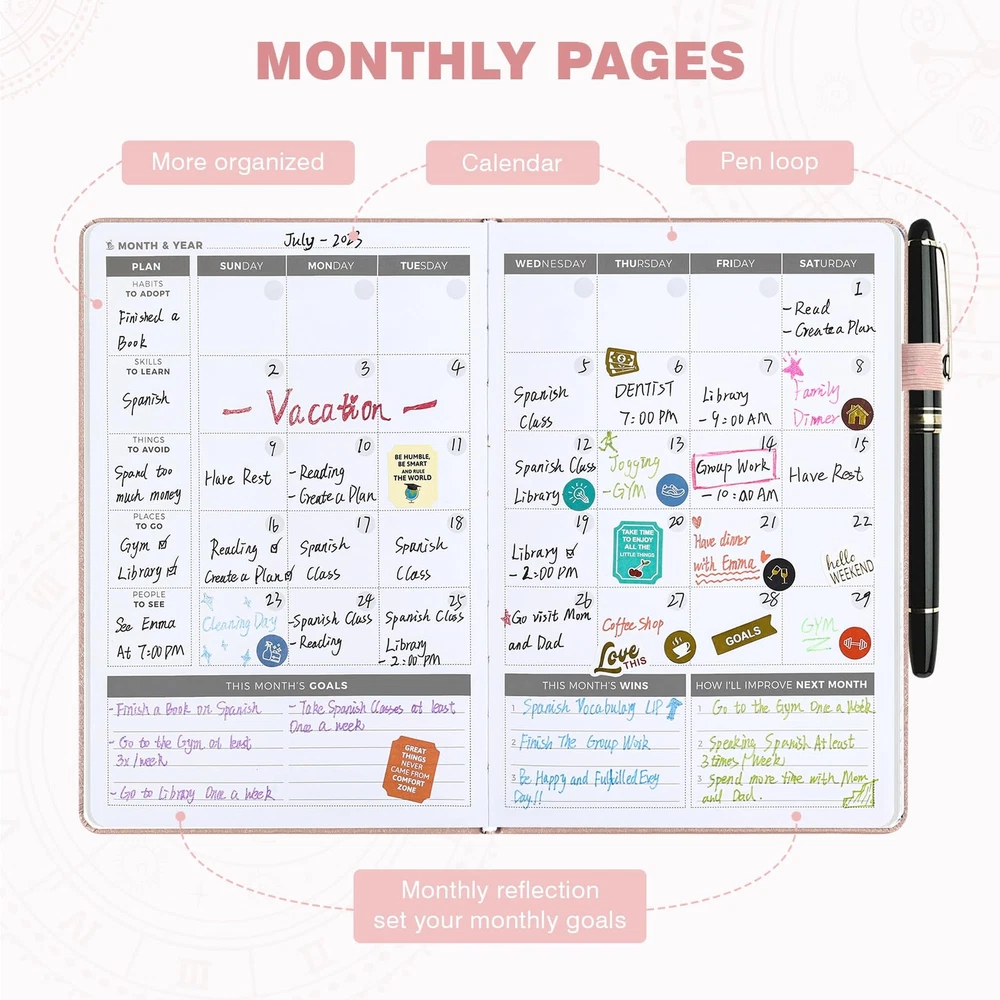 Brand: Ospelelf gtin13: Does not apply UPC: Does not apply Weight: 1.43 Pounds Type: Does not apply Color: Rose Gold (Undated 7 Months ) Size: A5 (5.5 x 8.5'') MPN: Does not apply Model: Does not apply Package Dimensions LxWxH: 8.9x6.26x1.69 Inches