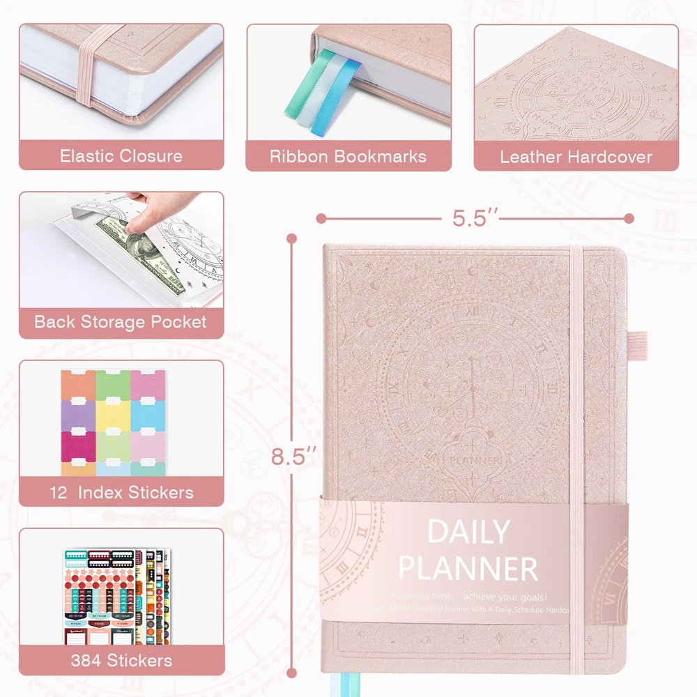 Ospelelf 2025 Leather Undated Daily Planner (5.5 x 8.5''), Weekly & Monthly Life Planner, Organizer Notebook & Productivity Journal. A5 Hardcover with Stickers(Rose Gold) Exquisite & Unique Leather Cover - This planner is completely handcrafted by faux leather that is sof and thick. It features precise deep embossing on the cover and durable leather cord binding,which offers a soft touch with a natural, distressed look that's truly exclusive. Stay Organized & Achieve Your Goals - Learn to prioritize by using monthly and weekly priority sections to focus your energy on most initial goals. Manage your time effectively and never miss a meeting again by using the monthly calendar and weekly planning sections to schedule appointments and deadlines. Strive for continuous improvement throughout monthly reflection sections. This is a perfect productivity and time management planner for men and women! Improve Work-Life Balance & Feel Happier - Make you better by setting and achieving goals in all significant areas of your life. Develop more healthy habits and positive daily rituals, and stick to them by using the habit tracker section. Incorporate gratitude and affirmation techniques for a more inspired and happier everyday life. Undated, Luxurious & Premium Quaility - The planner comes undated so you can start any time of the year without wasting a page. 7 months capacity runs in bulk and are separated into weeks and days.3 colorful bookmarks to flip between weekly and monthly spreads. The hardcover is made from skin-friendly faux leather with unique artwork engraved, a convenient pen holder, elastic band, and totally 384 decorative stickers and 12 index stickers. An Item That Makes You Special Among Others - If you are searching for a perfect planner that makes a difference, then please try Ospelelf. We are dedicated to designing and manufacturing innovative products of the highest quality. Exquisite & Unique Leather Cover - This planner is completely handcrafted by faux leather that is sof and thick. It features precise deep embossing on the cover and durable leather cord binding,which offers a soft touch with a natural, distressed look that's truly exclusive. Stay Organized & Achieve Your Goals - Learn to prioritize by using monthly and weekly priority sections to focus your energy on most initial goals. Manage your time effectively and never miss a meeting again by using the monthly calendar and weekly planning sections to schedule appointments and deadlines. Strive for continuous improvement throughout monthly reflection sections. This is a perfect productivity and time management planner for men and women! Improve Work-Life Balance & Feel Happier - Make you better by setting and achieving goals in all significant areas of your life. Develop more healthy habits and positive daily rituals, and stick to them by using the habit tracker section. Incorporate gratitude and affirmation techniques for a more inspired and happier everyday life. Undated, Luxurious & Premium Quaility - The planner comes undated so you can start any time of the year without wasting a page. 7 months capacity runs in bulk and are separated into weeks and days.3 colorful bookmarks to flip between weekly and monthly spreads. The hardcover is made from skin-friendly faux leather with unique artwork engraved, a convenient pen holder, elastic band, and totally 384 decorative stickers and 12 index stickers. An Item That Makes You Special Among Others - If you are searching for a perfect planner that makes a difference, then please try Ospelelf. We are dedicated to designing and manufacturing innovative products of the highest quality. Shipping from the USA All of our products are shipped from the USA, ensuring quick delivery to your destination. Payment We offer the following payment methods: PayPal, credit card, bank transfer, and eBay's secure payment system. Free Shipping & Free Returns Shipping within the USA is FREE. Additionally, any return is absolutely free for you. Risk-Free Purchase You have the option to return an item within 30 days without any justification. We cover the return shipping costs! Fast Shipping We ship immediately upon receipt of payment. Generally, the package is delivered within 2-3 days in the USA. If it takes longer, we will contact you. Quality and Costs Made in Europe, USA, China No customs fees or additional charges Total satisfaction guarantee Invoice with declared VAT available upon request in .pdf format Feedback Your feedback is very important to us. After you pay for your purchase, you will automatically receive positive feedback from us.