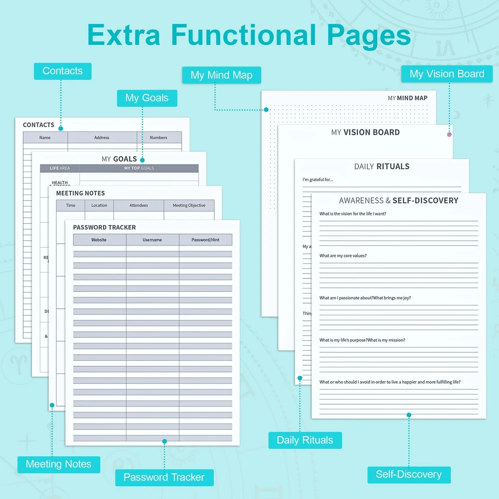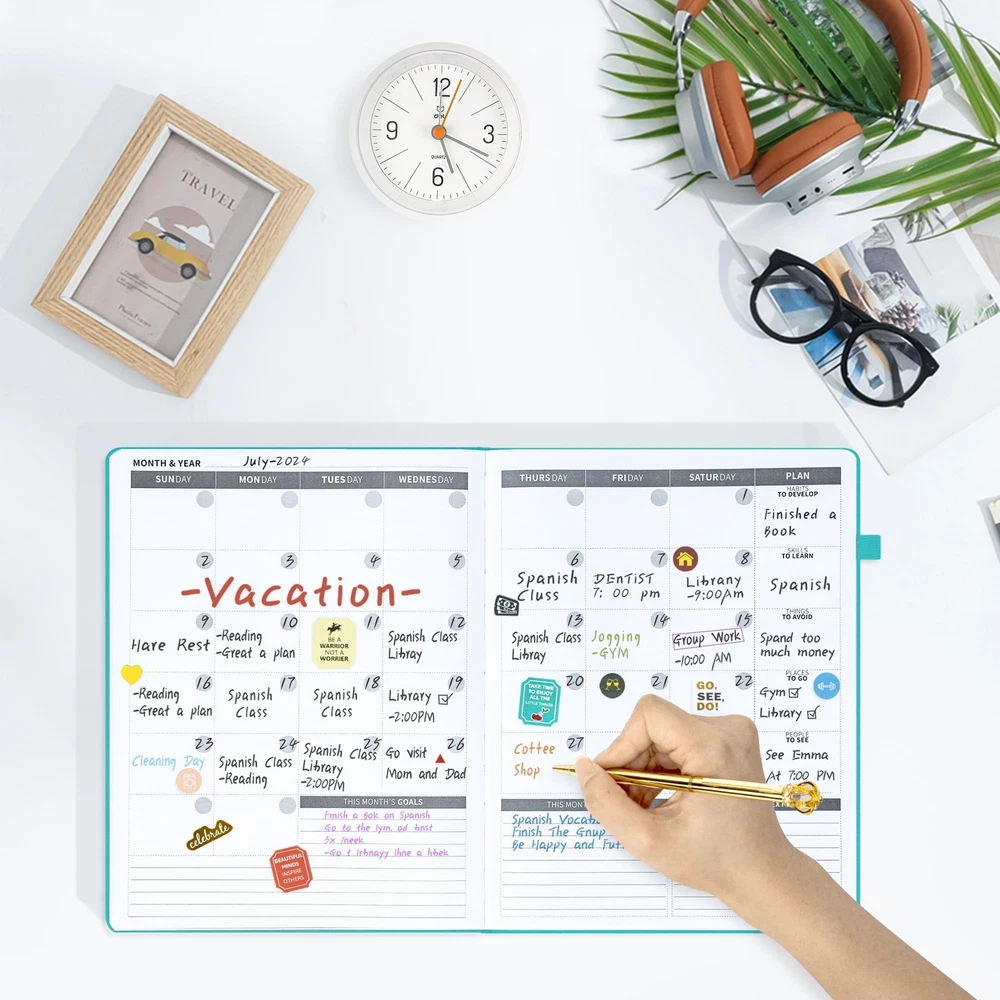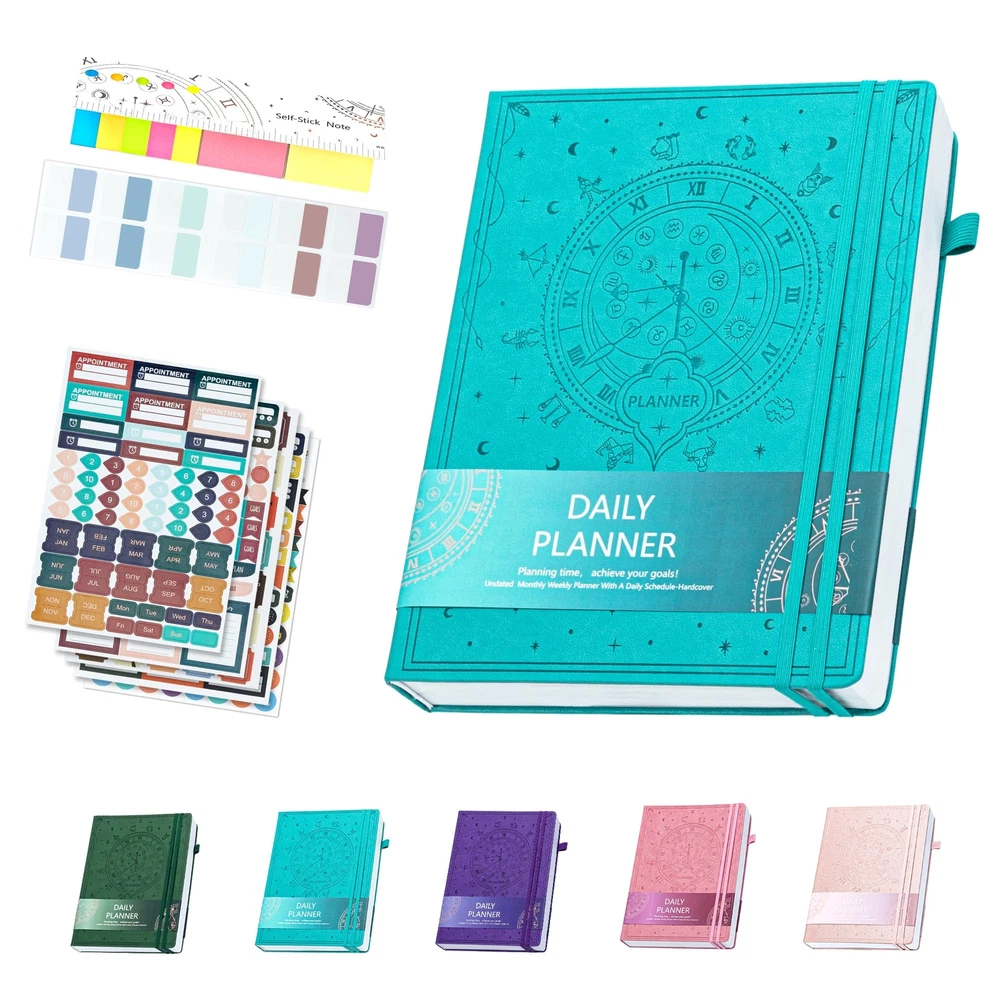 Ospelelf Undated Daily Planner 2024-2025 12 Months, 8.5 x 11 Weekly & Monthly Life Planner, Organizer Notebook & Productivity Journal. A4 Leather Hardcover with Stickers(Turquoise) Exquisite & Unique Leather Cover - This 8.5 x 11'' planner is completely handcrafted by using leather that is sof and thick. It features precise deep embossing on the cover and durable leather cord binding,which offers a soft touch exterior with a natural, distressed look that’s truly exclusive. Stay Organized & Achieve Your Goals - Learn to prioritize by using monthly and weekly priority sections to focus your energy on most initial goals. Manage your time effectively and never miss a meeting again by using the monthly calendar and weekly planning sections to schedule appointments and deadlines. Strive for continuous improvement by using the weekly and monthly reflection sections. This is the perfect productivity and time management planner for men and women! Improve Work-Life Balance, Build New Habits & Feel Happier - Become your best self by setting and achieving goals in all important areas of your life. Bring more healthy habits and positive daily rituals into your life, and stick to them by using the habit tracker section of the planner. Incorporate gratitude and affirmation techniques for a more inspired and happier everyday life. Undated, Luxurious & Premium Quaility - The planner comes undated so you can start any time of the year without wasting a page. 12 months capacity runs in bulk and are separated into weeks and days.3 colorful bookmarks to flip between weekly and monthly spreads. The hardcover is made from skin-friendly faux leather with unique artwork engraved, a convenient pen holder, elastic band, and totally 384 decorative stickers and 12 index stickers. Unique Among Others - If you are searching for a perfect planner that makes a difference, then please try Ospelelf. We are dedicated to designing and manufacturing innovative products of the highest quality. Exquisite & Unique Leather Cover - This 8.5 x 11'' planner is completely handcrafted by using leather that is sof and thick. It features precise deep embossing on the cover and durable leather cord binding,which offers a soft touch exterior with a natural, distressed look that’s truly exclusive. Stay Organized & Achieve Your Goals - Learn to prioritize by using monthly and weekly priority sections to focus your energy on most initial goals. Manage your time effectively and never miss a meeting again by using the monthly calendar and weekly planning sections to schedule appointments and deadlines. Strive for continuous improvement by using the weekly and monthly reflection sections. This is the perfect productivity and time management planner for men and women! Improve Work-Life Balance, Build New Habits & Feel Happier - Become your best self by setting and achieving goals in all important areas of your life. Bring more healthy habits and positive daily rituals into your life, and stick to them by using the habit tracker section of the planner. Incorporate gratitude and affirmation techniques for a more inspired and happier everyday life. Undated, Luxurious & Premium Quaility - The planner comes undated so you can start any time of the year without wasting a page. 12 months capacity runs in bulk and are separated into weeks and days.3 colorful bookmarks to flip between weekly and monthly spreads. The hardcover is made from skin-friendly faux leather with unique artwork engraved, a convenient pen holder, elastic band, and totally 384 decorative stickers and 12 index stickers. Unique Among Others - If you are searching for a perfect planner that makes a difference, then please try Ospelelf. We are dedicated to designing and manufacturing innovative products of the highest quality. Shipping from the USA All of our products are shipped from the USA, ensuring quick delivery to your destination. Payment We offer the following payment methods: PayPal, credit card, bank transfer, and eBay's secure payment system. Free Shipping & Free Returns Shipping within the USA is FREE. Additionally, any return is absolutely free for you. Risk-Free Purchase You have the option to return an item within 30 days without any justification. We cover the return shipping costs! Fast Shipping We ship immediately upon receipt of payment. Generally, the package is delivered within 2-3 days in the USA. If it takes longer, we will contact you. Quality and Costs Made in Europe, USA, China No customs fees or additional charges Total satisfaction guarantee Invoice with declared VAT available upon request in .pdf format Feedback Your feedback is very important to us. After you pay for your purchase, you will automatically receive positive feedback from us.