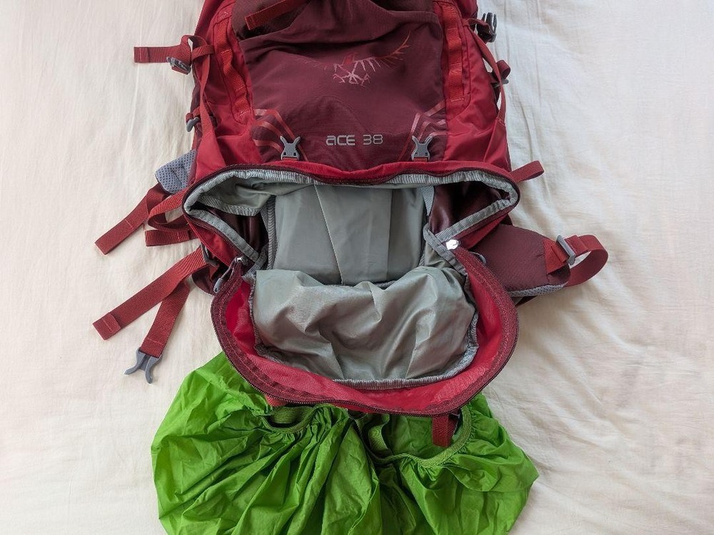 Osprey Ace 38 Hiking Backpack 38L Red, Rain Cover Used Japan Key Features **Product Overview** Introducing the ACE 38 Red Backpack, designed for children aged 10 to 14. This versatile backpack features an adjustable back length to accommodate growth and comes with a green rain cover for added protection. **Item Specifics** - Brand: ACE - Model: ACE 38 - Capacity: 30L / 45L - Color: Red - Material: Not specified - Features: Rain Cover, Adjustable Straps - Country/Region of Manufacture: Japan - Condition: Used **Condition** The backpack has been used approximately five times and shows minor scratches on the bottom. However, it remains fully functional. **Inclusions** Includes the ACE 38 Red Backpack and a green rain cover. No other items are included. **Additional Notes** For detailed features, please search online. Specifications Brand Osprey Country Japan Product Description Item Title Osprey Ace 38 Backpack Red Payment Supports managed payments Please pay within 5 days after auction is finished. About Us We are located in Japan. It's our pleasure to make you happy by proposing our recommend item. If you have any questions or request about items, please feel free to ask us. International Buyers - Please Note: -Import duties, taxes, and charges are not included in the item price or shipping charges. These charges are the buyer's responsibility. -Please check with your country's customs office to determine what these additional costs will be prior to bidding/buying. -These charges are normally collected by the delivering freight (shipping) company or when you pick the item up - do not confuse them for additional shipping charges. -We do not mark merchandise values below value or mark items as - gifts - The US and International government regulations prohibit such behavior. Thank you for your understanding.