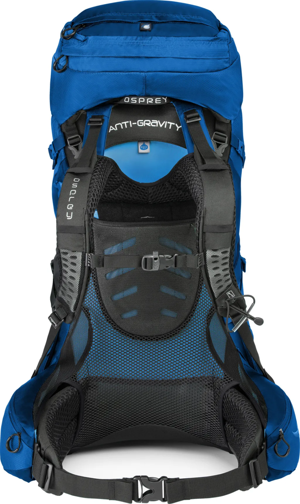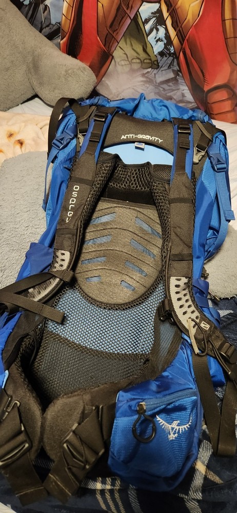 Handle/Strap Material: Nylon Closure: Zip Seller Notes: “Very good condition. Used once.” Capacity: 70 L Department: Men Trim Material: Nylon Brand: Osprey Personalized: No Insect Repellent Treated: No Frame Material: Nylon Features: Divider System, Elastic Pocket, Hip Belt, Multifunction Compartment, Padded, Padded Straps, Ventilated Back Panel, Water Resistant, Zip Fastener Vintage: No Size: Medium Color: Blue Material: Nylon Sport/Activity: Backpacking
