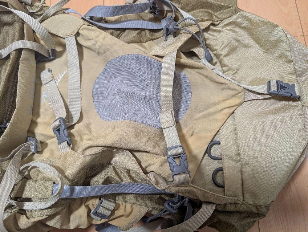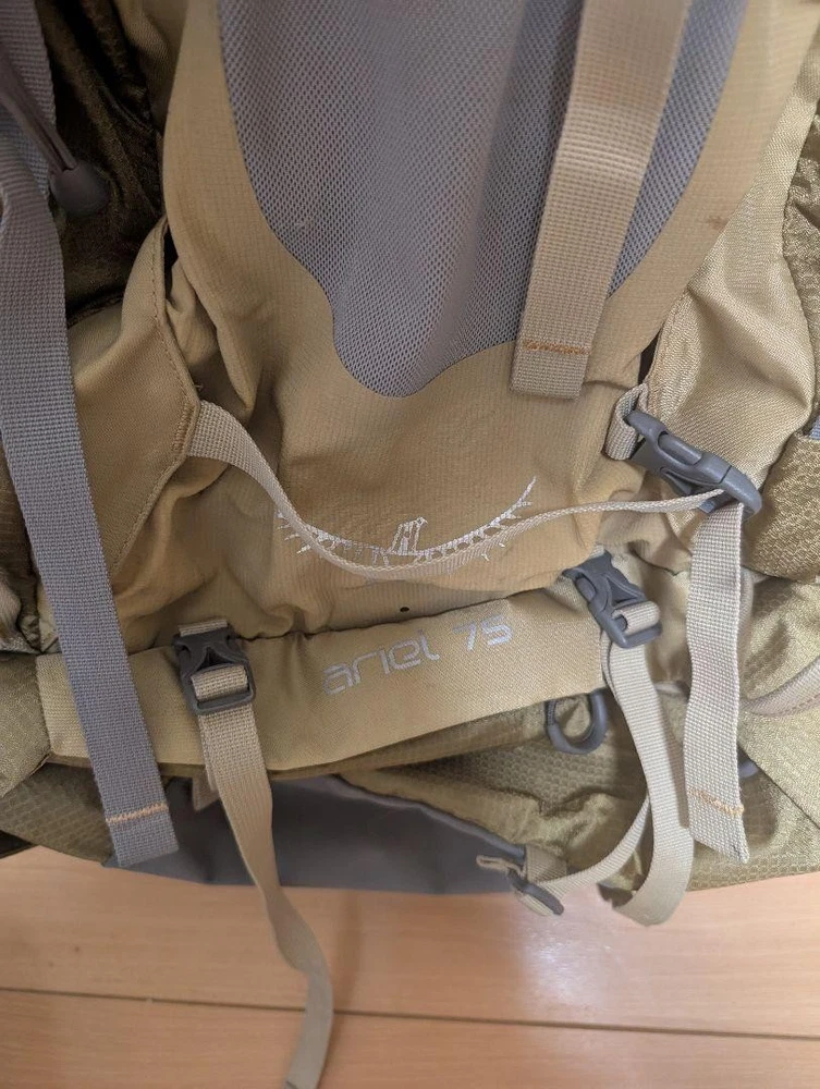 Osprey Eriel 75L Hiking Backpack Beige/Gray Breathable Mesh Used Japan