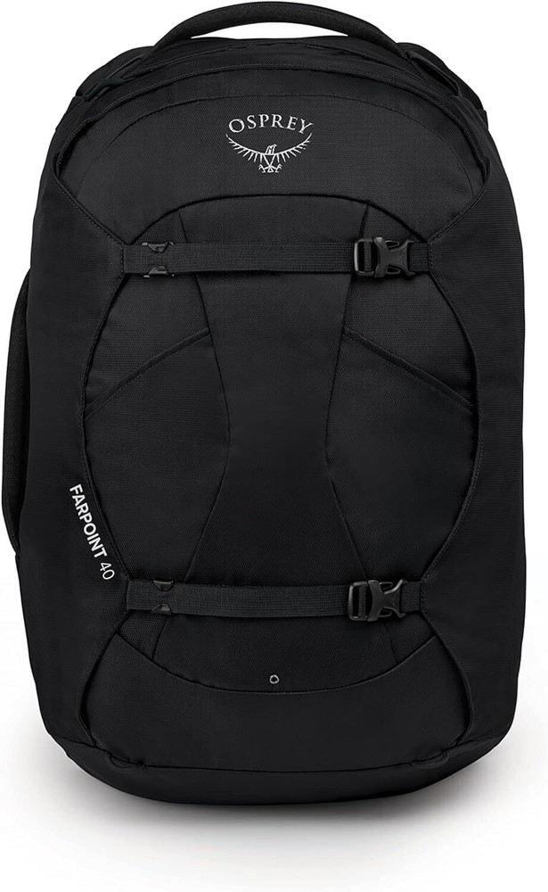 Package: 1X Osprey Farpoint 40L Men's Travel Backpack, Black Description: Large panel zip access to main compartment with dual front compression straps - 40L total volume Meets carry-on size restrictions for most airlines (22h x 14w x 9d in at 3.48 lbs.) Lockable zipper access to main compartment and quick access zippered pocket to padded laptop & tablet sleeve (fits up to most 16" laptops) The harness and hipbelt stow away for safekeeping while checked and deploy quickly for any path or trail Two front mesh bottle pockets (fits most water bottles) and an external zip toiletry pocket.